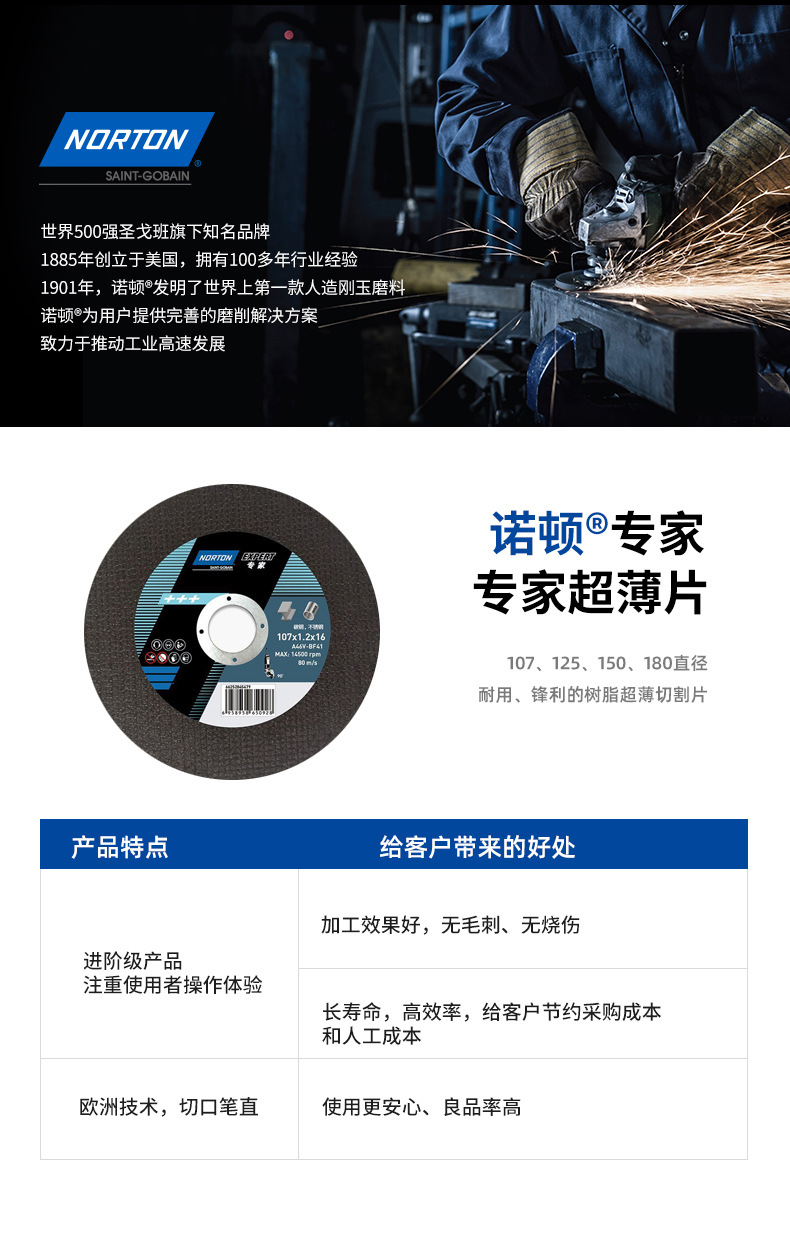 | 产品名称 | 圣戈班诺顿 专家超薄片 树脂切割片 金属不锈钢砂轮片 100 |