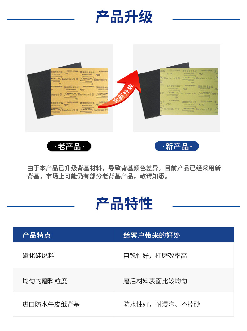 | 产品名称 | 圣戈班诺顿 T483水砂纸 研磨抛光 碳化硅 纸基水磨砂纸 100张/盒 |