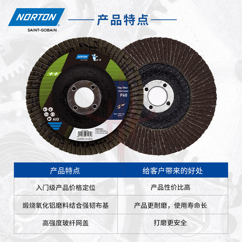 | 产品名称 | 圣戈班诺顿OPP银熊75盖百页轮打磨片抛光片4寸玻纤平面 P60 80 |