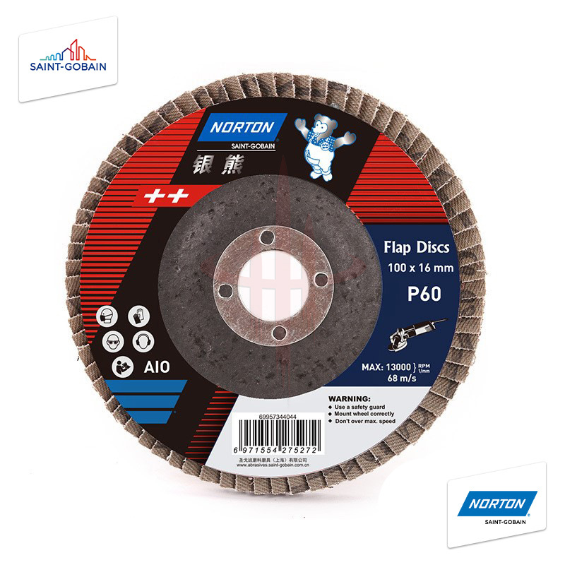 圣戈班诺顿 4寸银熊90玻纤网盖平面百页碟 百页片 100x16弹性磨盘