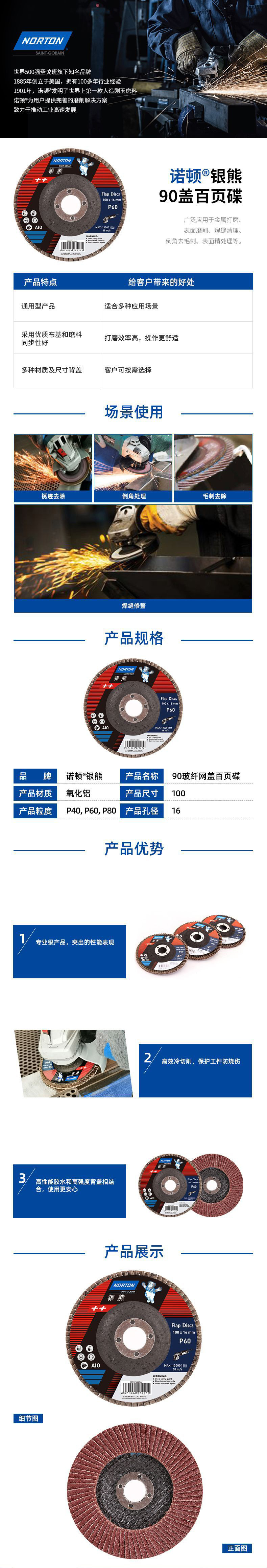 | 产品名称 | 圣戈班诺顿 4寸银熊90玻纤网盖平面百页碟 百页片 100x16弹性磨盘 |