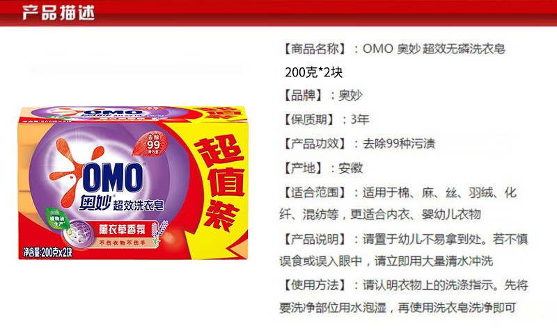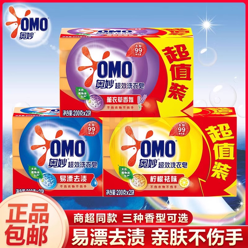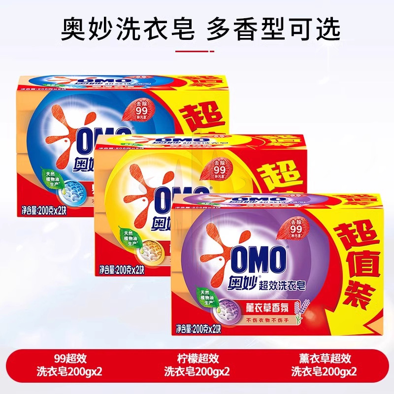 | 产品名称 | 奥妙99超效洗衣皂肥皂去污去渍手洗大块透明皂超值装200g×2块 |
