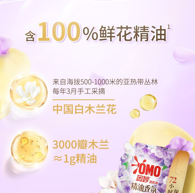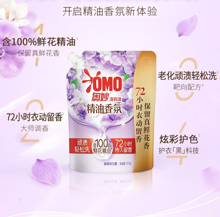 | 产品名称 | 奥妙精油香氛洗衣液1000g深层洁净去污去渍护衣护色留花香2斤装 |