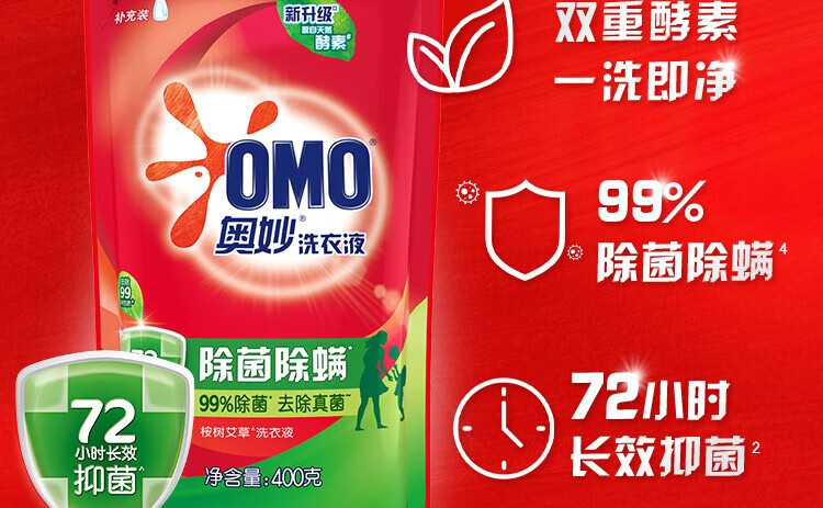 | 产品名称 | 奥妙除菌除螨洗衣液400g天然酵素强效去污长效抑菌家用补充装洗液 |