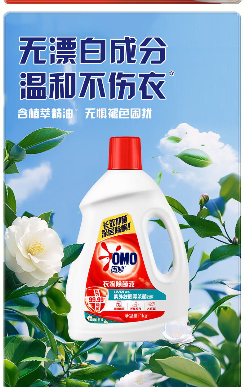 奥妙衣物消毒除菌液雪松薰衣草白茶香内外洗衣2斤杀菌除螨99.99%