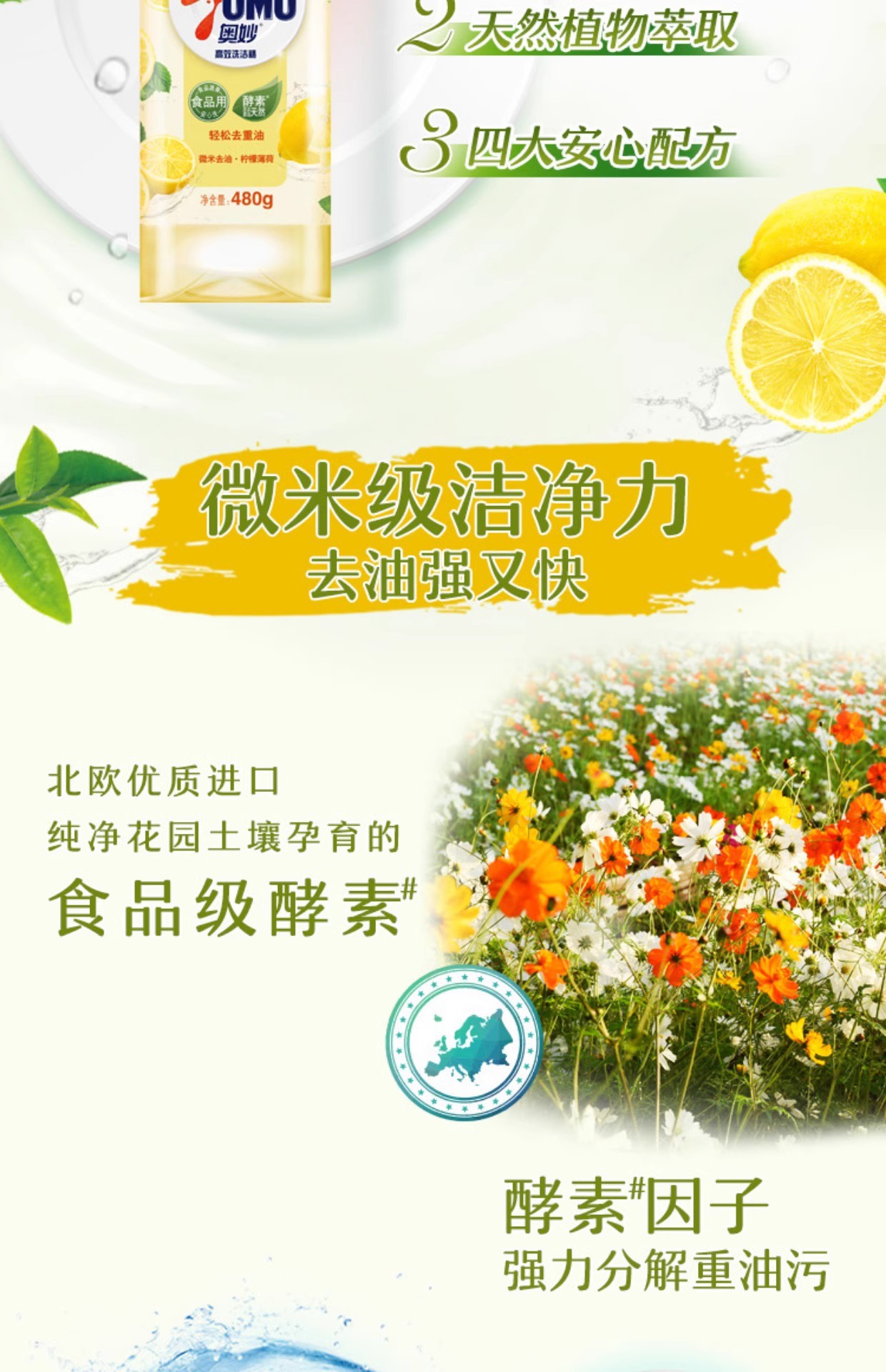 | 产品名称 | 奥妙洗洁精天然酵素果蔬餐具净洗涤剂轻松去重油净味不伤手480g |