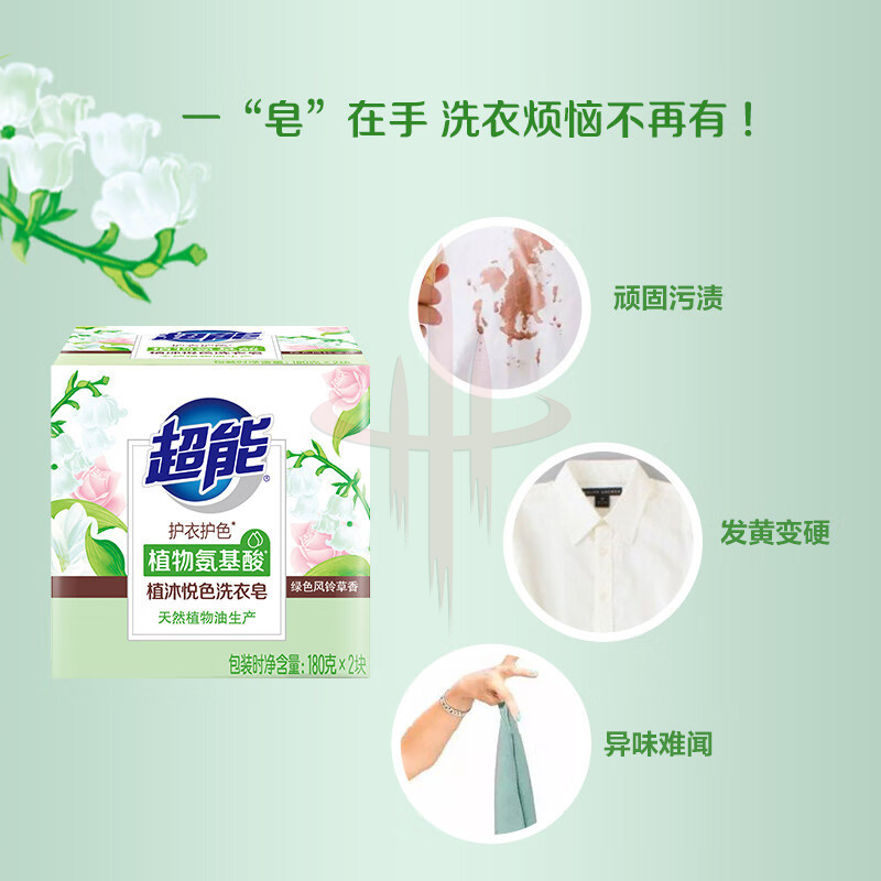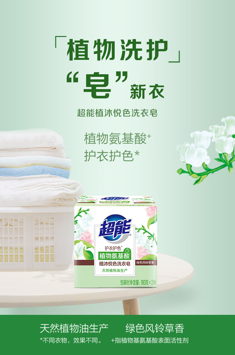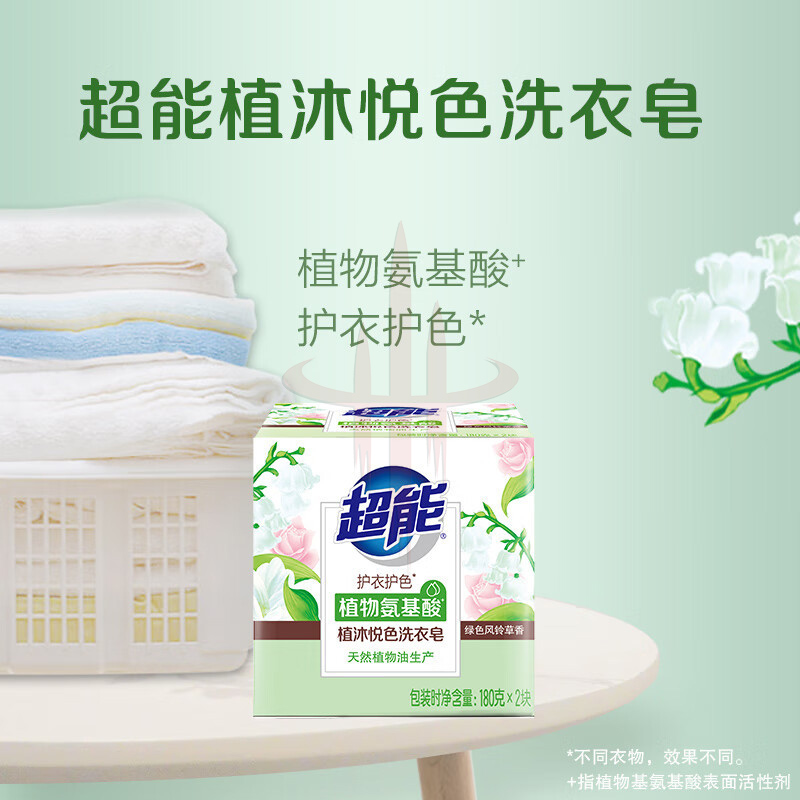 超能植沐悦色洗衣皂180g*2块风铃草香植物氨基酸无磷护衣护色批发