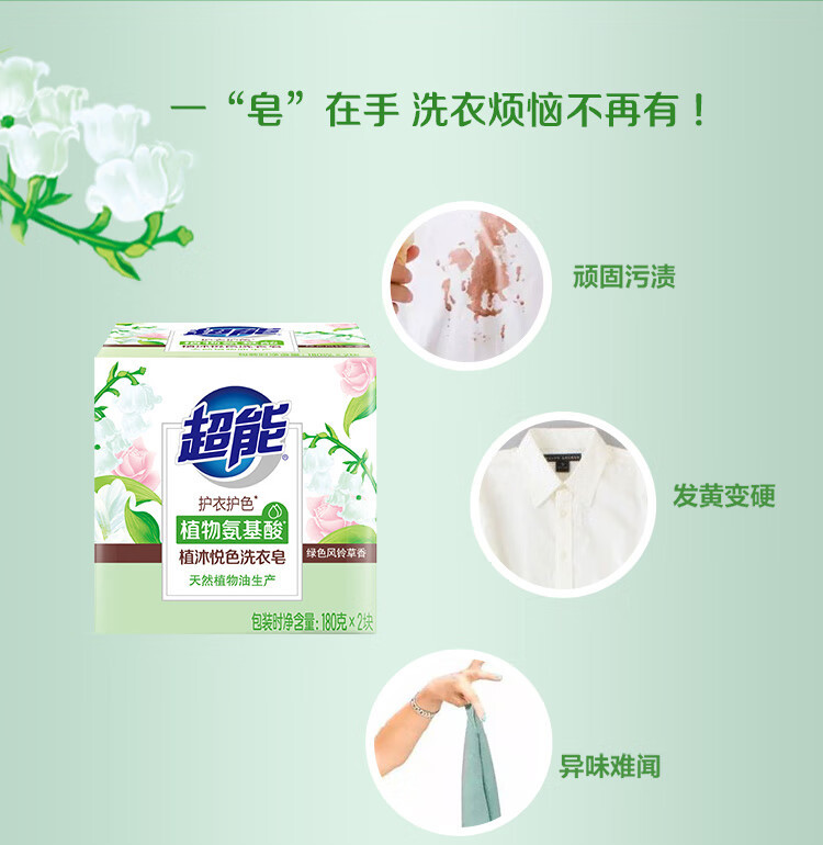 | 产品名称 | 超能植沐悦色洗衣皂180g*2块风铃草香植物氨基酸无磷护衣护色批发 |