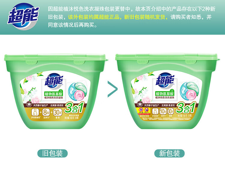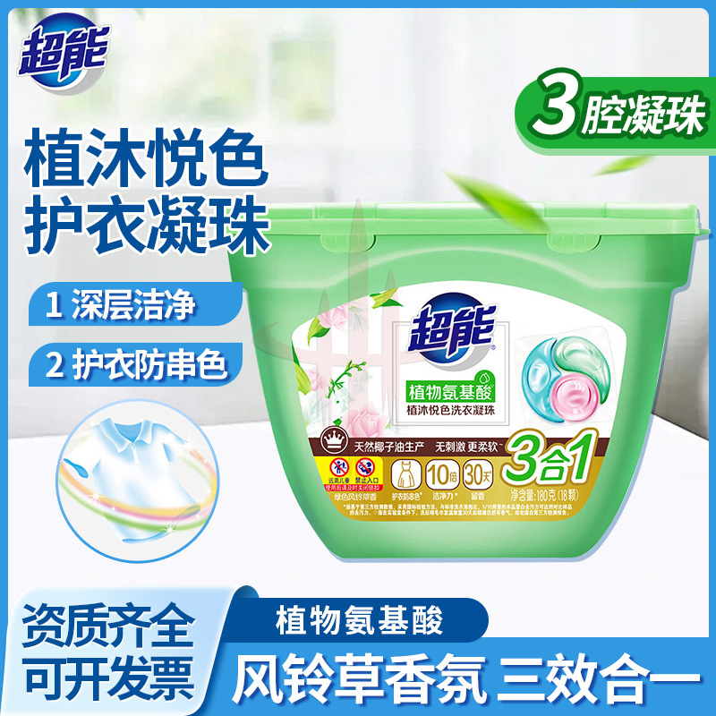 超能植沐悦色洗衣凝珠180g三腔洗衣球机洗防串色浓缩洗衣液整箱批