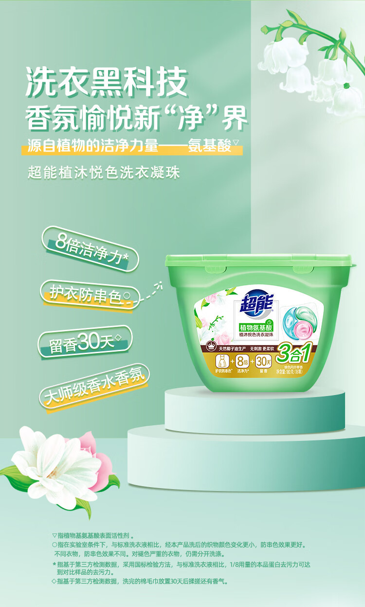| 产品名称 | 超能植沐悦色洗衣凝珠180g三腔洗衣球机洗防串色浓缩洗衣液整箱批 |