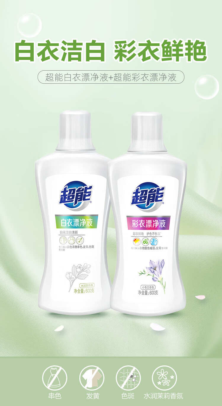 超能白衣漂白液彩衣彩漂液去黄去渍增白留香去污增白剂家用漂白剂
