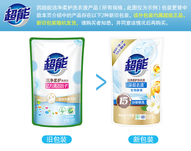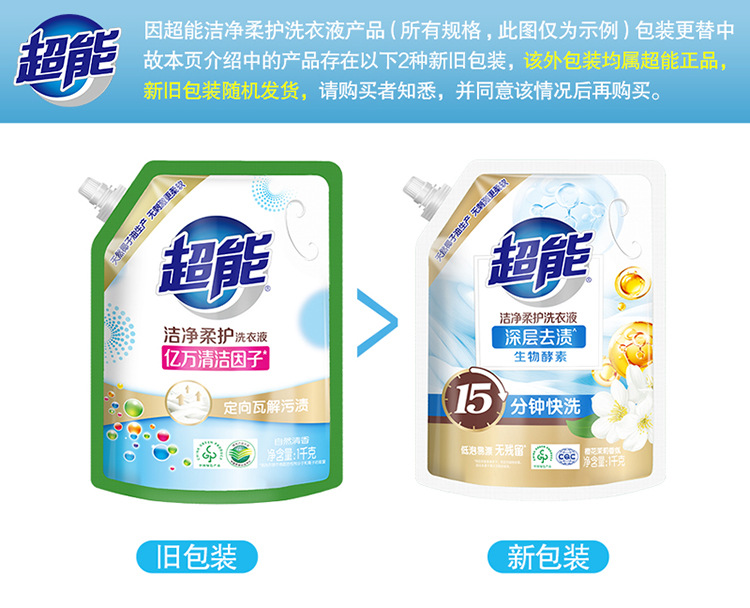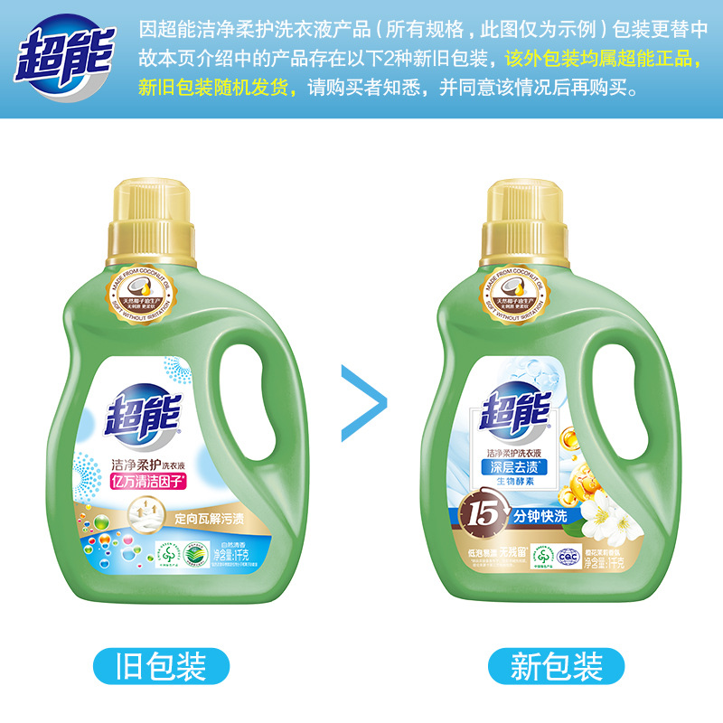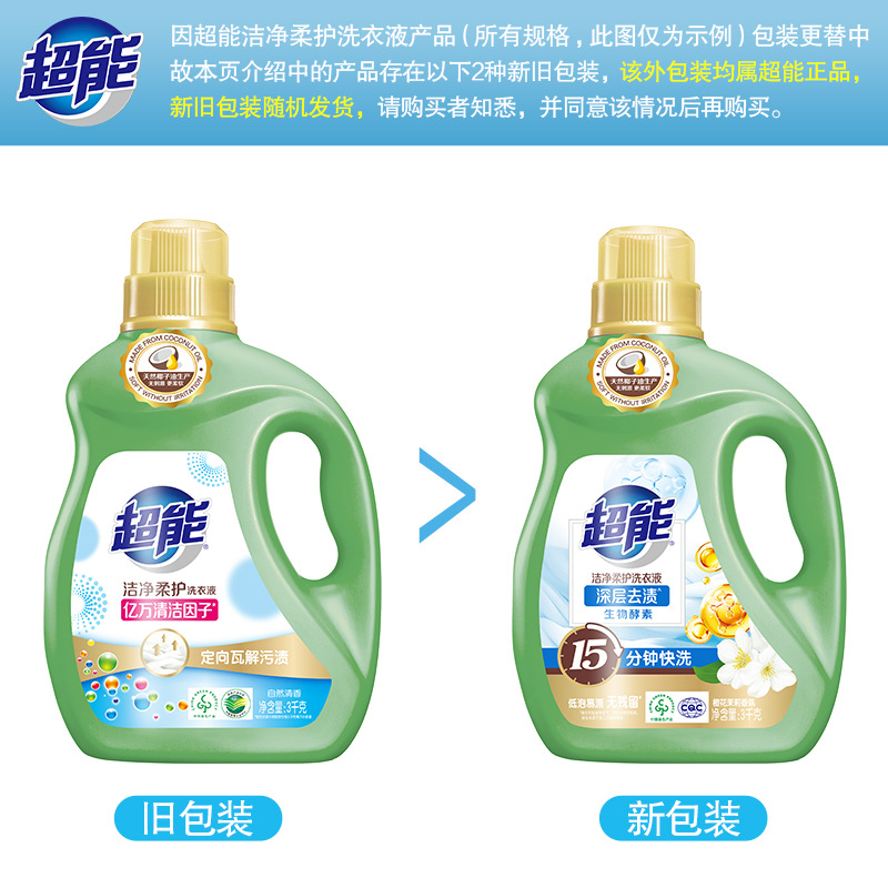 | 产品名称 | 超能洁净柔护洗衣液去污防串色低泡易漂持久留香深层去渍茉莉香 |