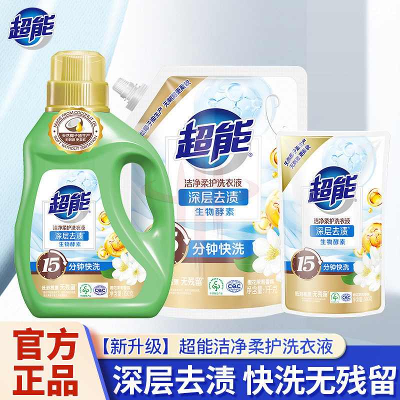 超能洁净柔护洗衣液瓶袋装天然椰子油温和无刺激自然清香去污护色