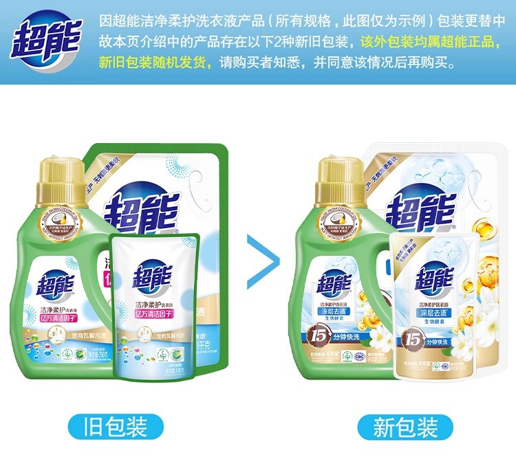 | 产品名称 | 超能洁净柔护洗衣液瓶袋装天然椰子油温和无刺激自然清香去污护色 |