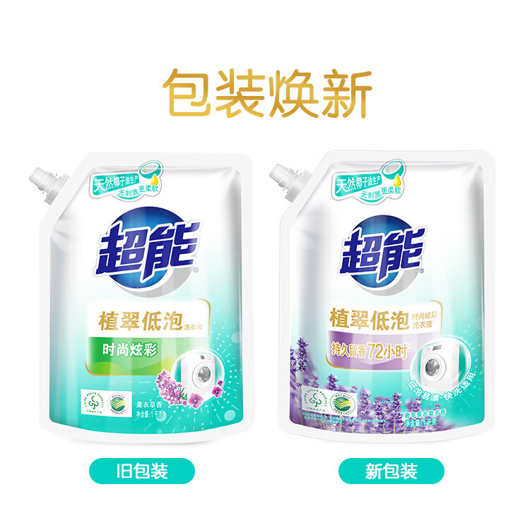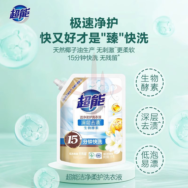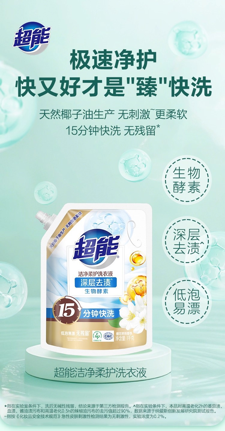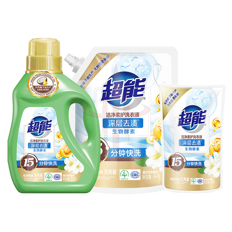 超能洁净柔护洗衣液瓶袋装天然椰子油温和无刺激自然清香去污护色
