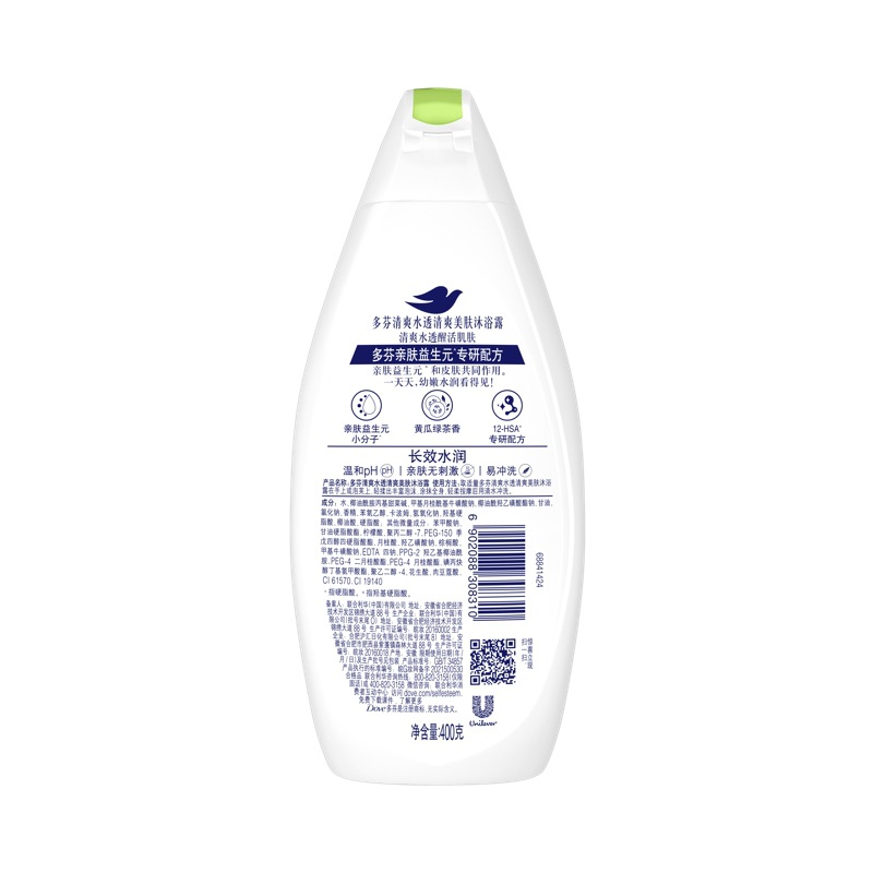 | 产品名称 | Dove清爽水透沐浴露400g滋养美肤沐浴乳持久留香易冲洗黄瓜绿茶香 |