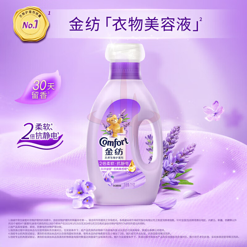| 产品名称 | 金纺衣物柔顺剂防静电持久留香柔软护理剂薰衣草1L |