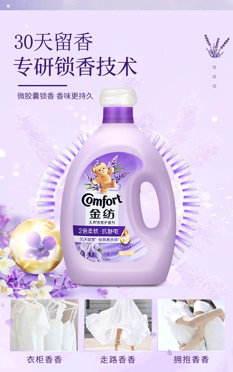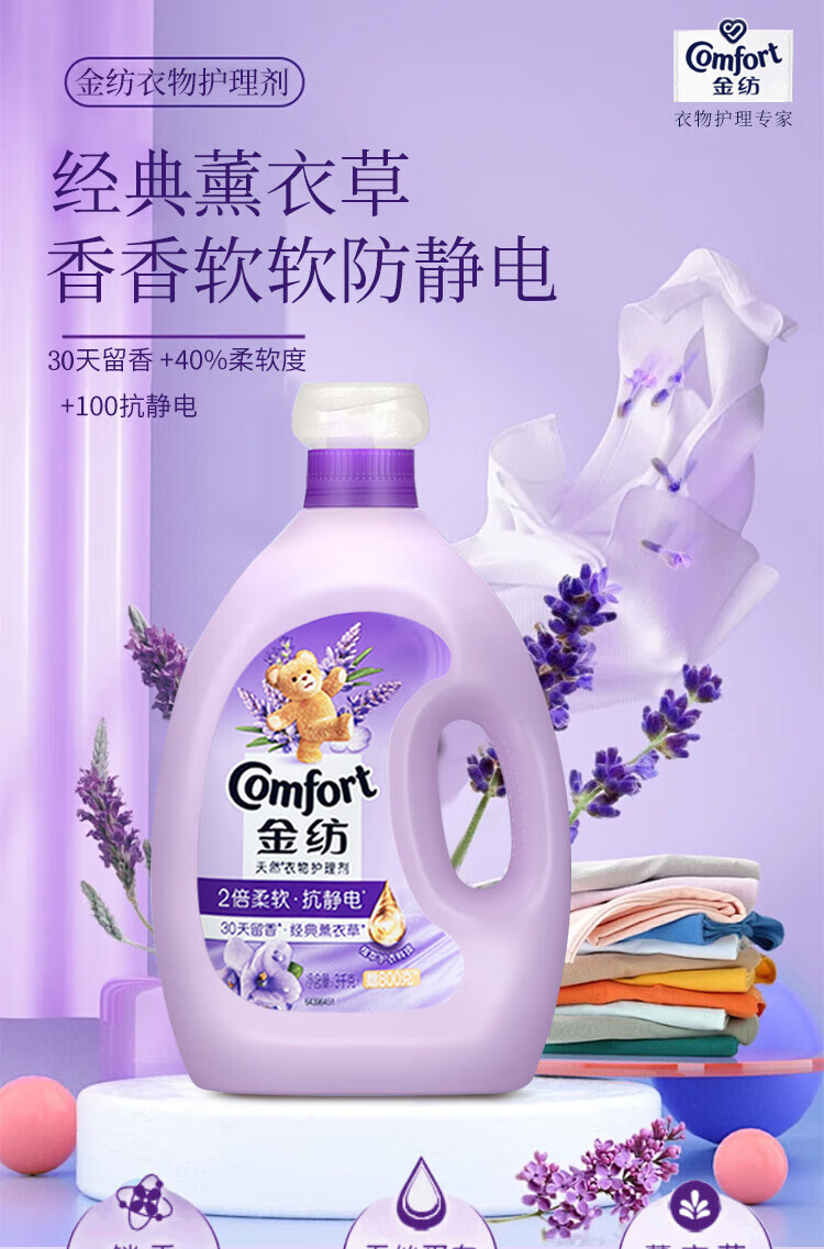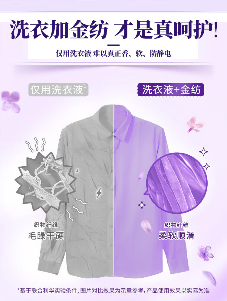 | 产品名称 | 金纺衣物调香大师香氛护理柔顺剂小苍兰除味香软防静电留香7.6斤 |
