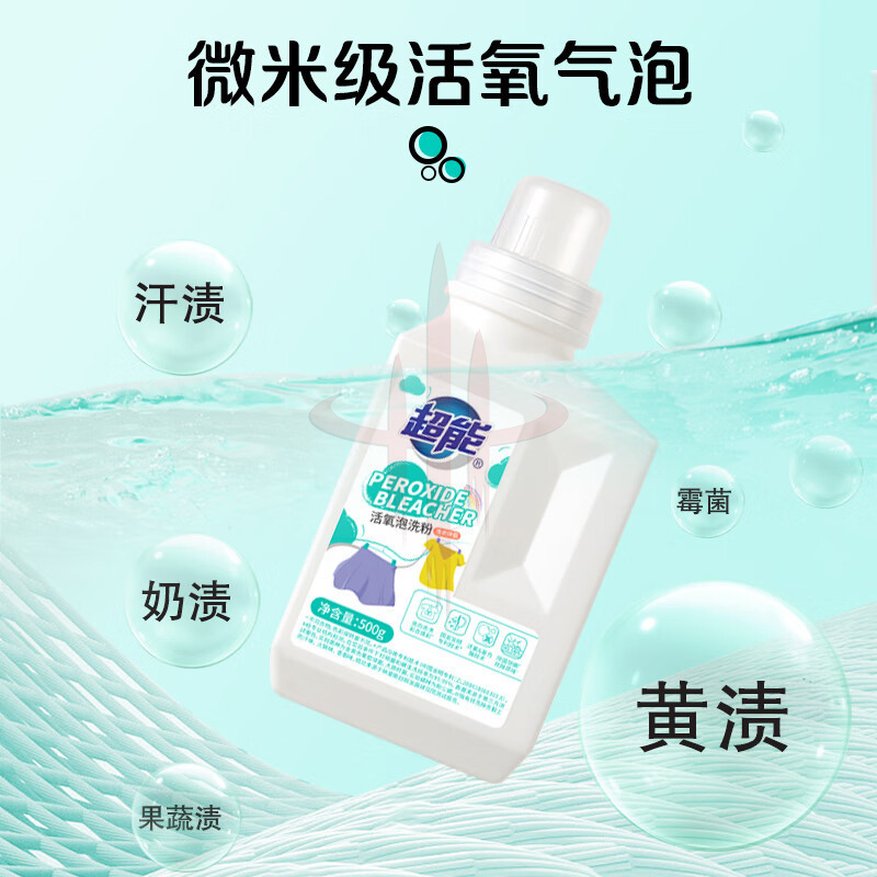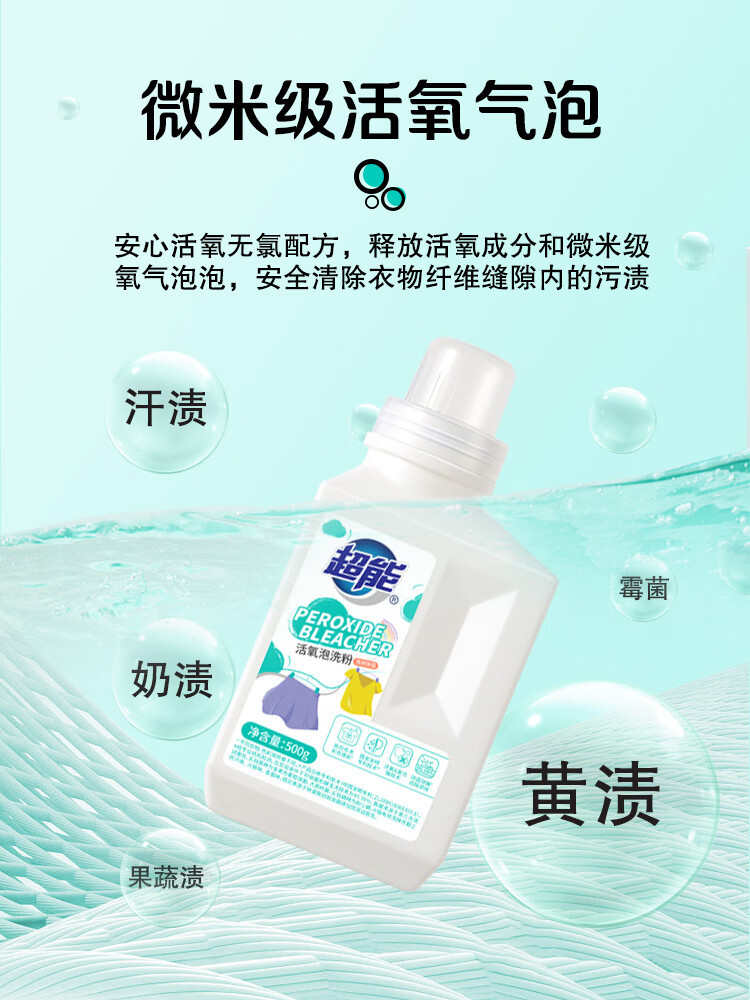超能活氧泡洗粉500g天然椰油天然艾草香去污增艳低泡易漂爆炸盐