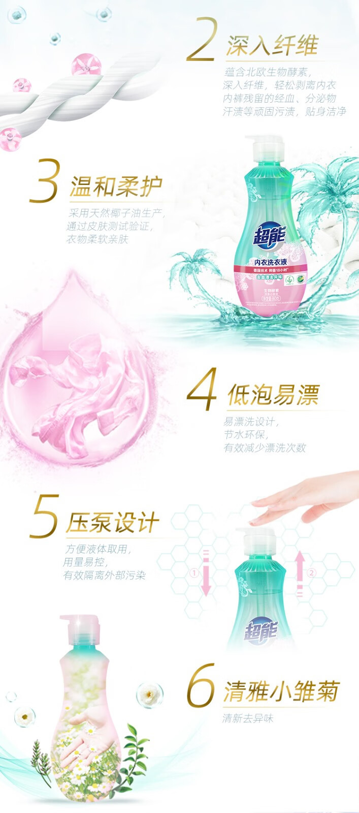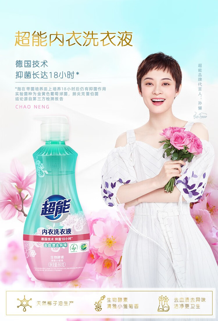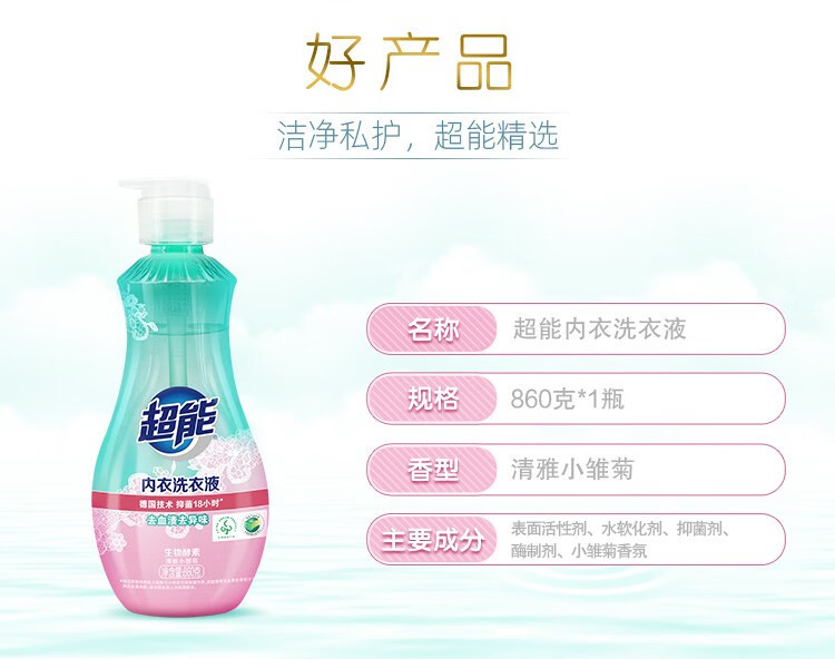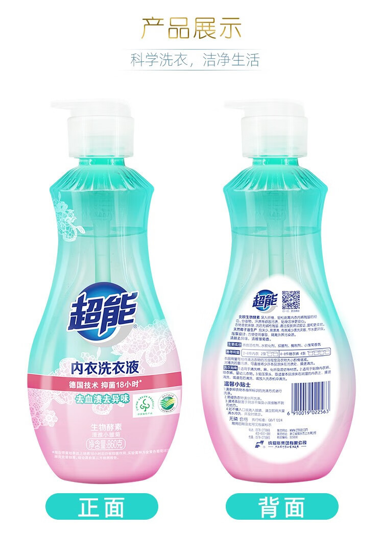 | 产品名称 | 超能内衣洗衣液清香型860g去血渍去异味18小时长效抑菌内衣清洗液 |