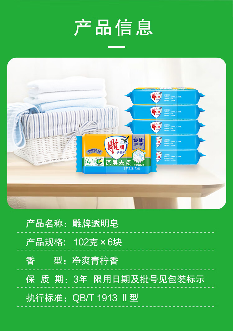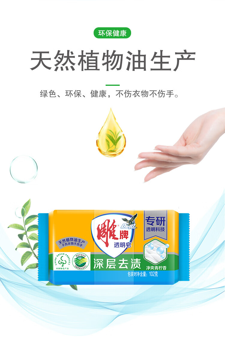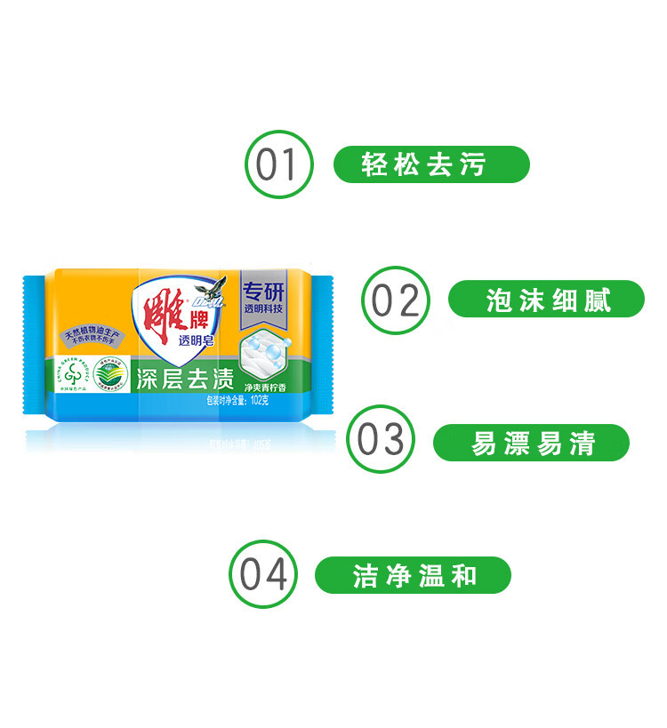 | 产品名称 | 雕牌肥皂洗衣皂102g透明皂柠檬香温和不伤手深层去渍整箱劳保批发 |