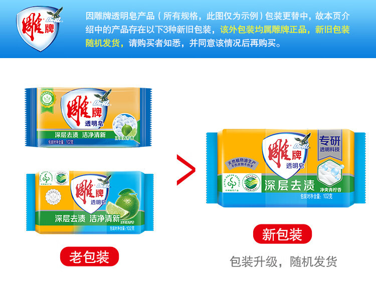 | 产品名称 | 雕牌透明皂洗衣皂块装增白皂深层洁净轻松去污易漂易清大块装肥皂 |