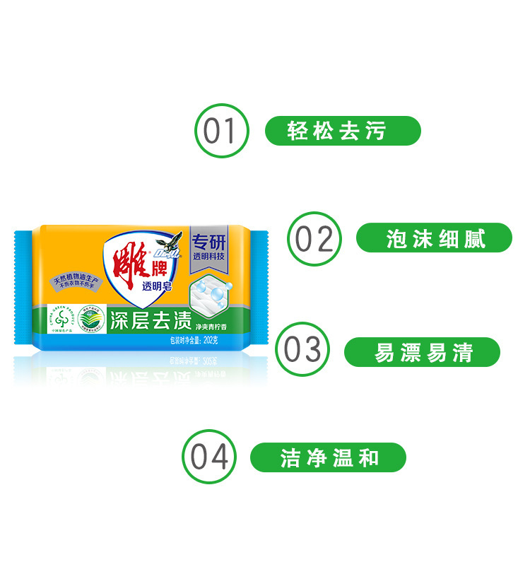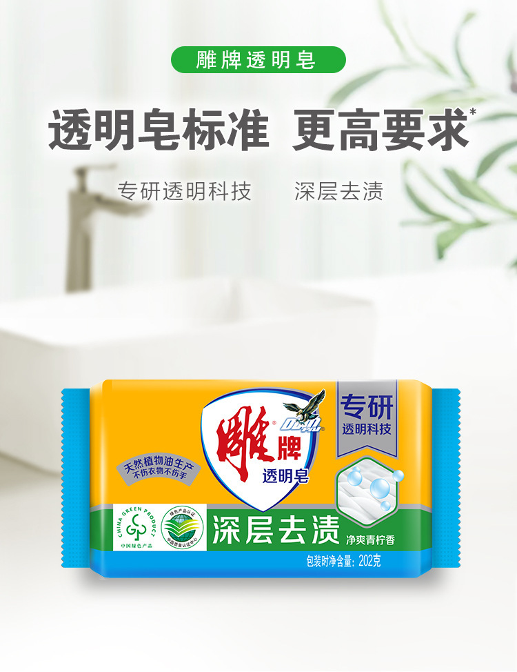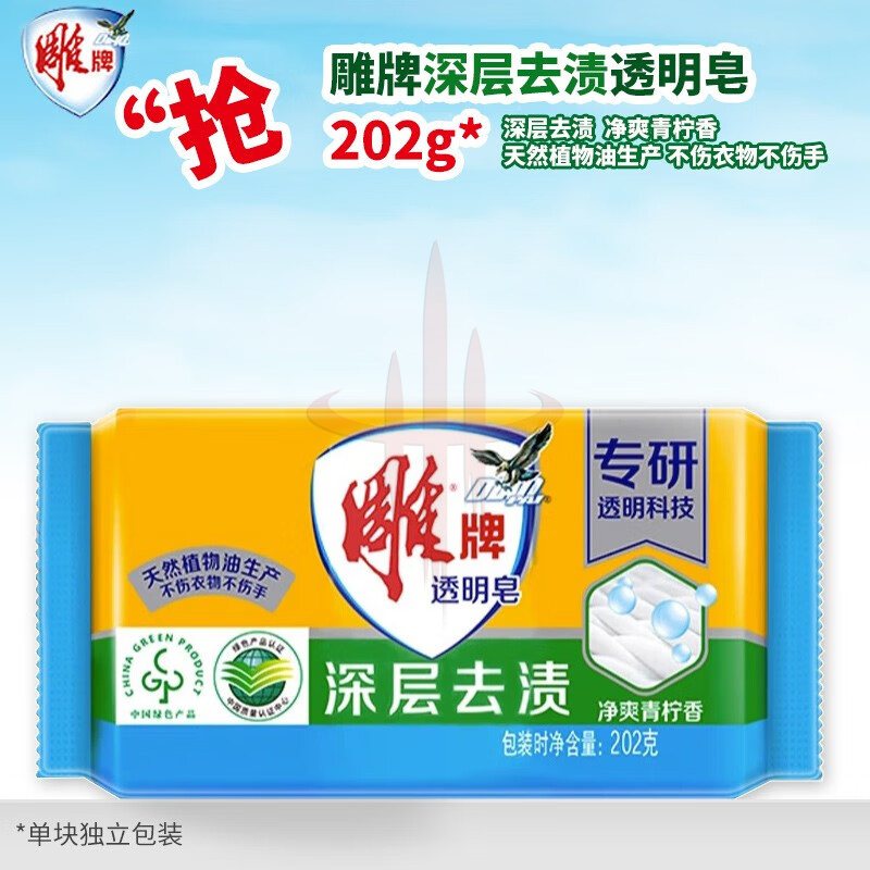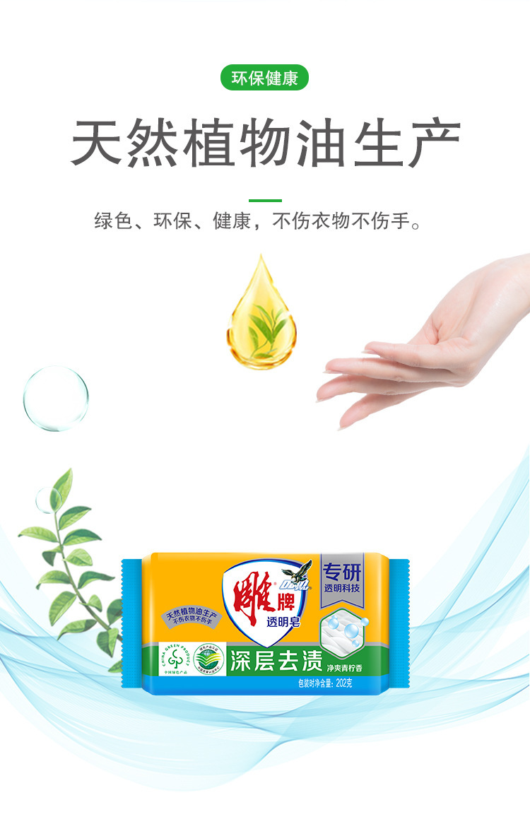 | 产品名称 | 雕牌透明皂净爽青柠202g无磷洗衣肥皂深层去渍大块独立包装批发 |