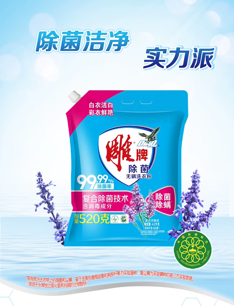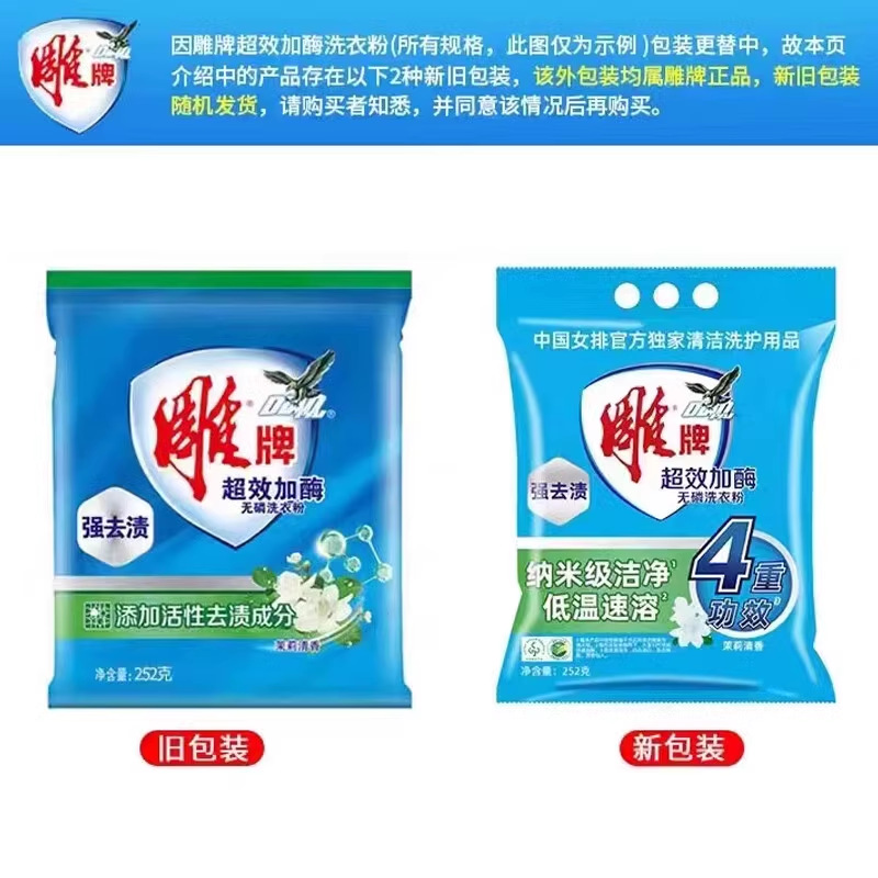 | 产品名称 | 雕牌 超效加酶洗衣粉 茉莉清香 10斤可选 无磷 低温速溶 强效去渍 |