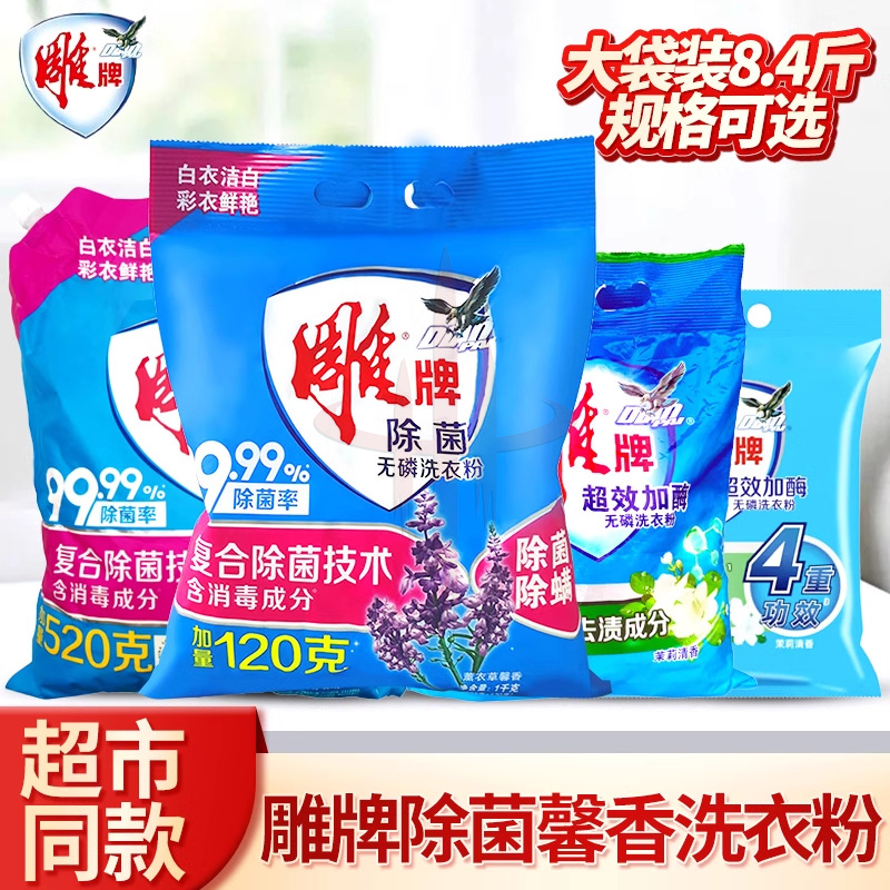 | 产品名称 | 雕牌 超效加酶洗衣粉 茉莉清香 10斤可选 无磷 低温速溶 强效去渍 |