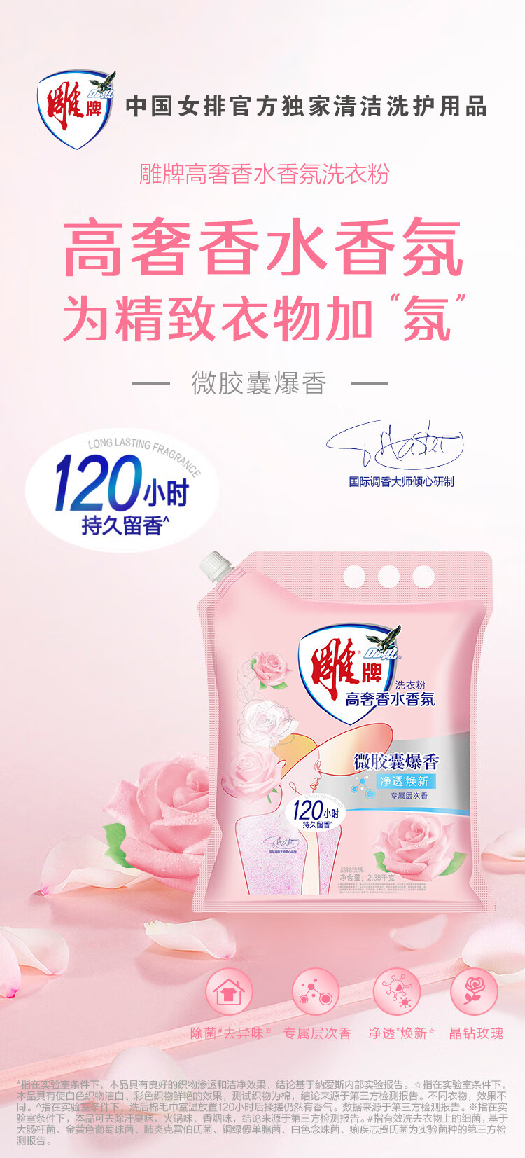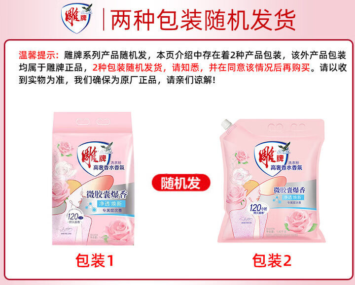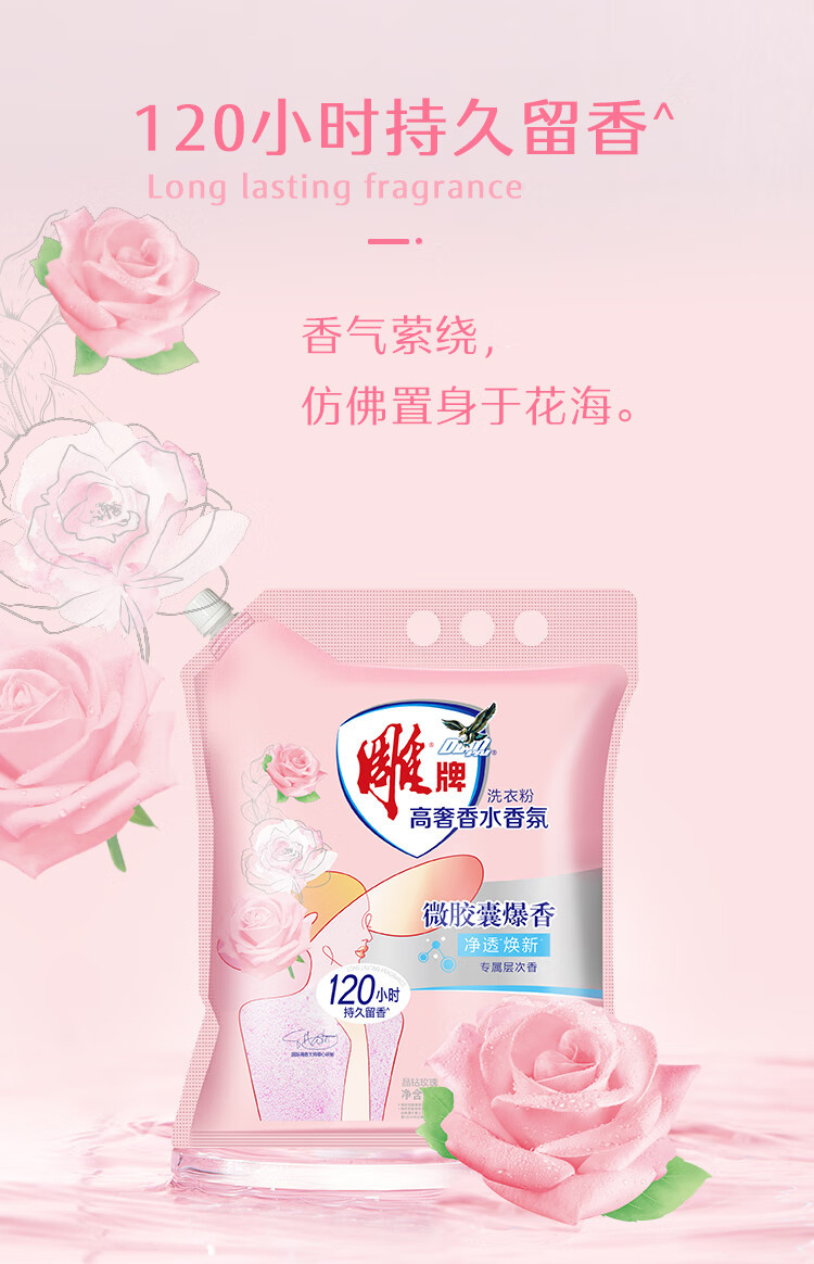 | 产品名称 | 雕牌高奢香水香氛洗衣粉祛异味120小时持久留香深层去污阳光馨香 |