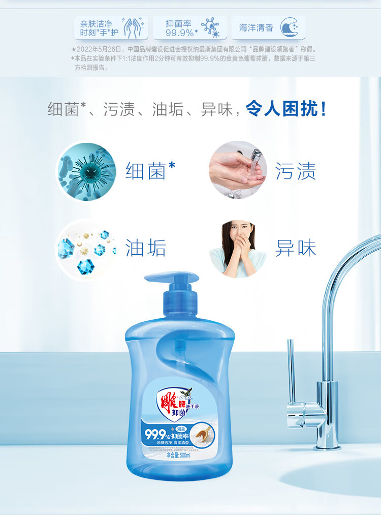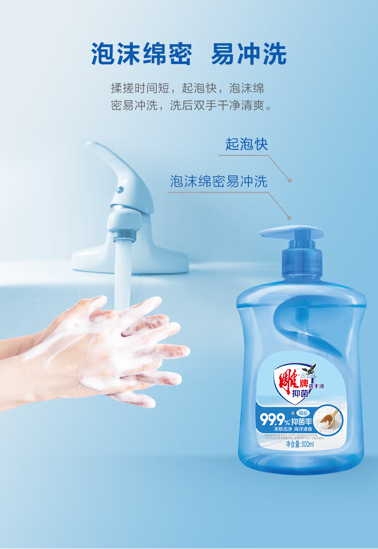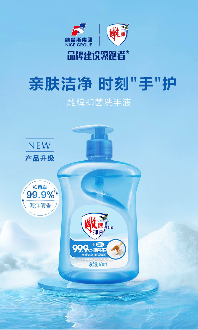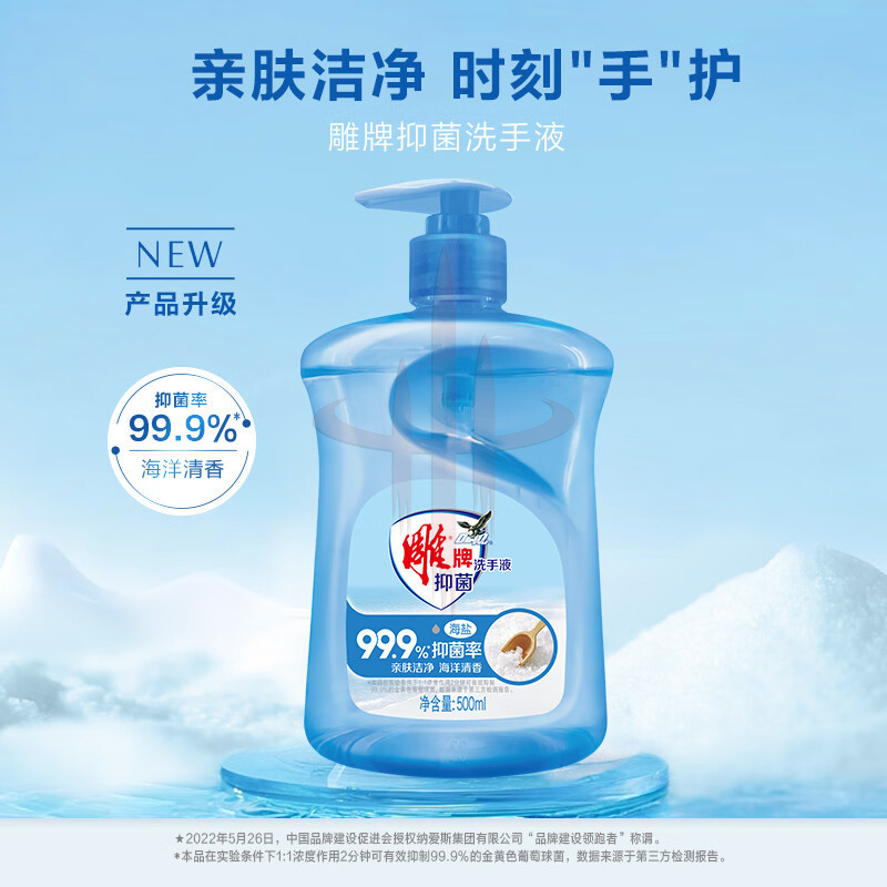 | 产品名称 | 雕牌洗手液500ml海盐抑菌亲肤洁净按压瓶健康护手整箱批发实惠装 |