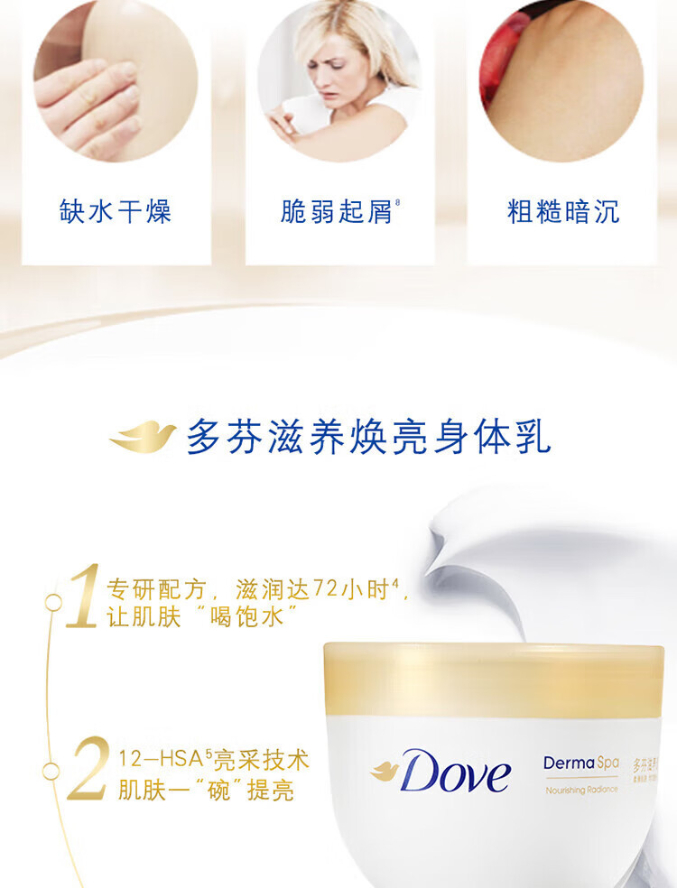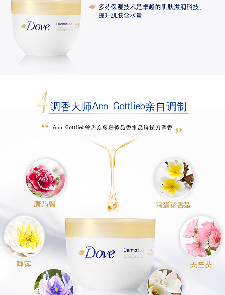 Dove/多芬大金碗身体乳大瓶300ML滋养焕亮补水持久留香家庭装批发