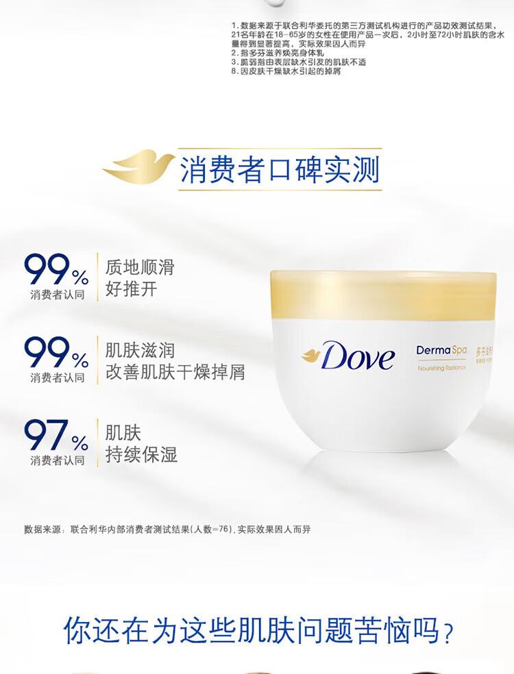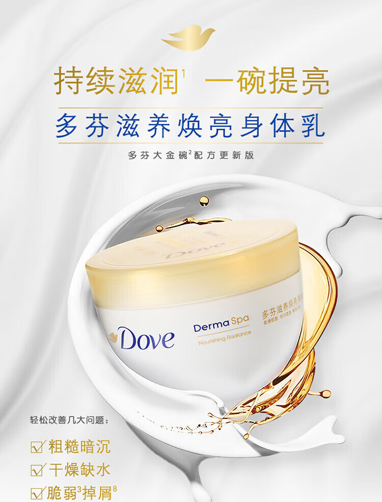 | 产品名称 | 多芬大金碗身体乳滋润透亮润肤乳保湿润肤露补水保湿 大金碗300ML |