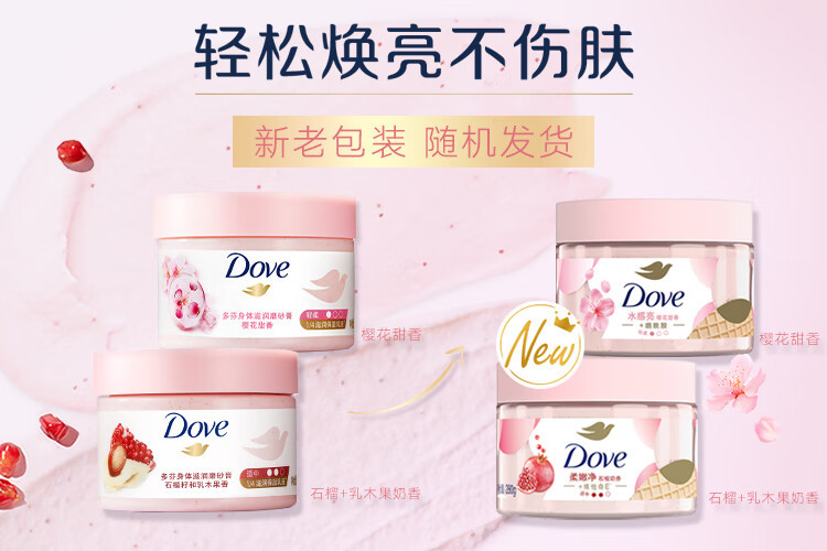 | 产品名称 | Dove多芬身体滋润磨砂膏280g全身温和磨砂去角质 石榴+樱花+澄糖 |