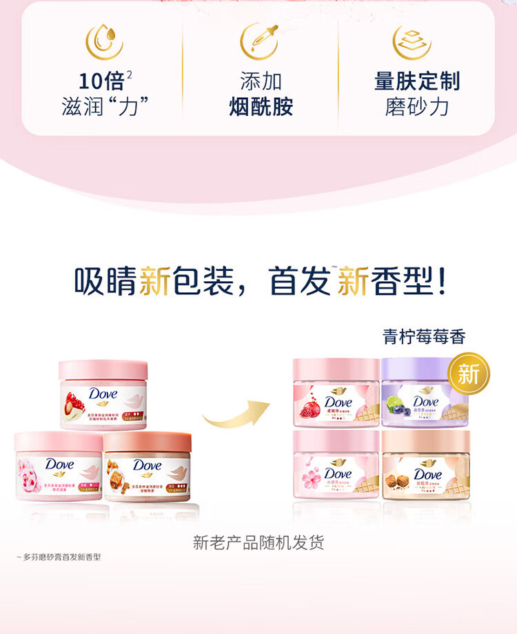 Dove多芬身体滋润磨砂膏280g全身温和磨砂去角质 石榴+樱花+澄糖
