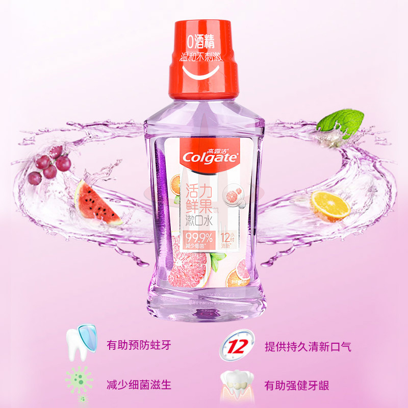高露洁漱口水鲜果清洁温和清新口气多口味不辣无刺激无酒精250ml