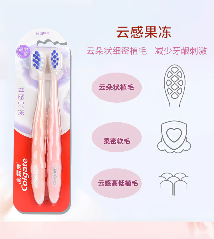 | 产品名称 | 高露洁软毛凸面牙刷 2支装纤细软毛小宽头 批发 云感果冻高密护龈 |