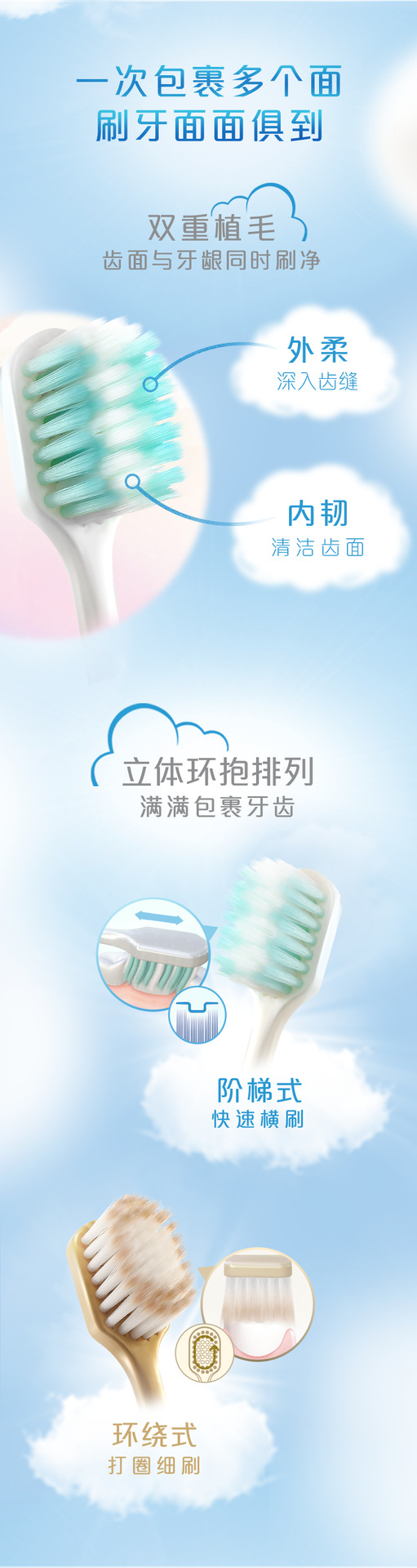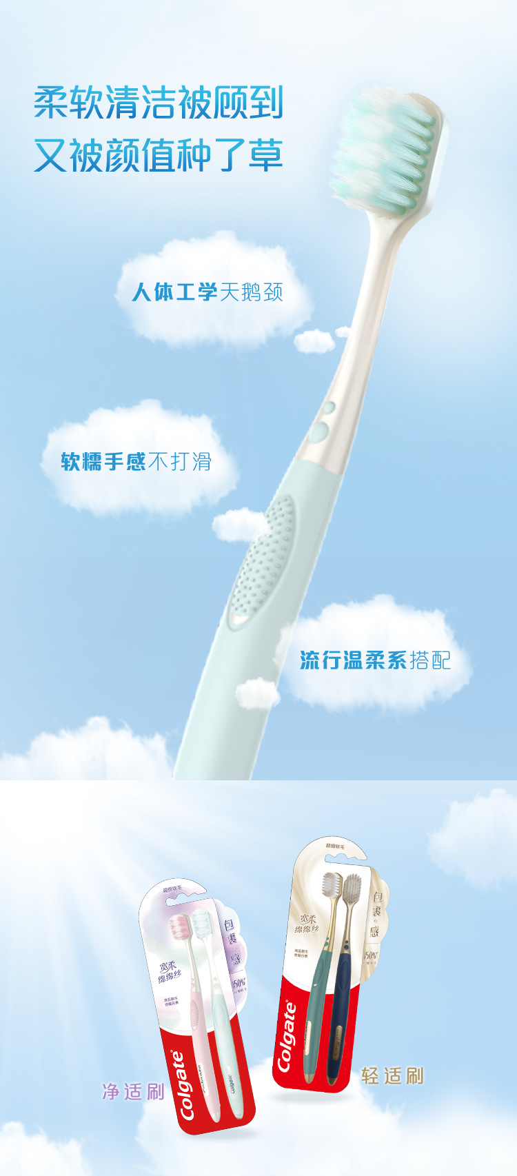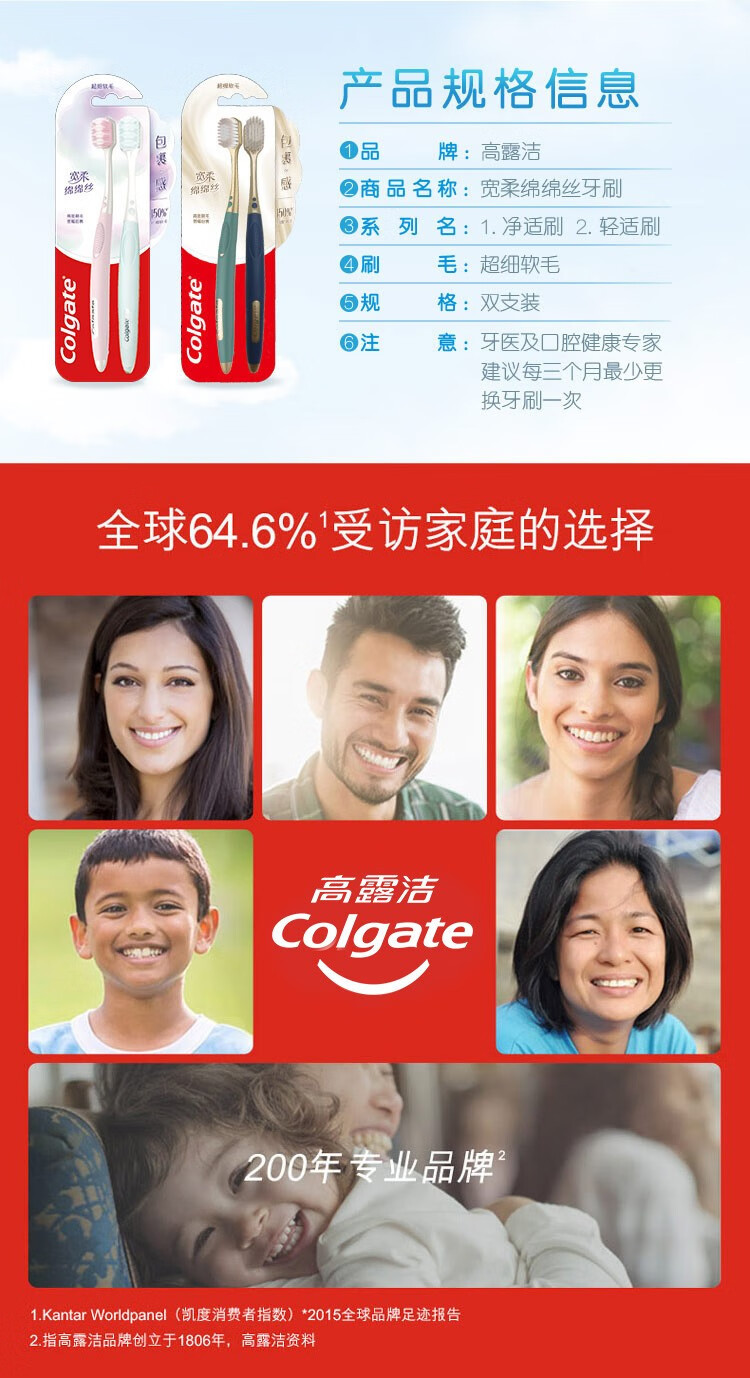 | 产品名称 | 高露洁宽柔绵绵丝牙刷2支装 高低刷毛宽幅包裹成人软毛小宽头牙刷 |