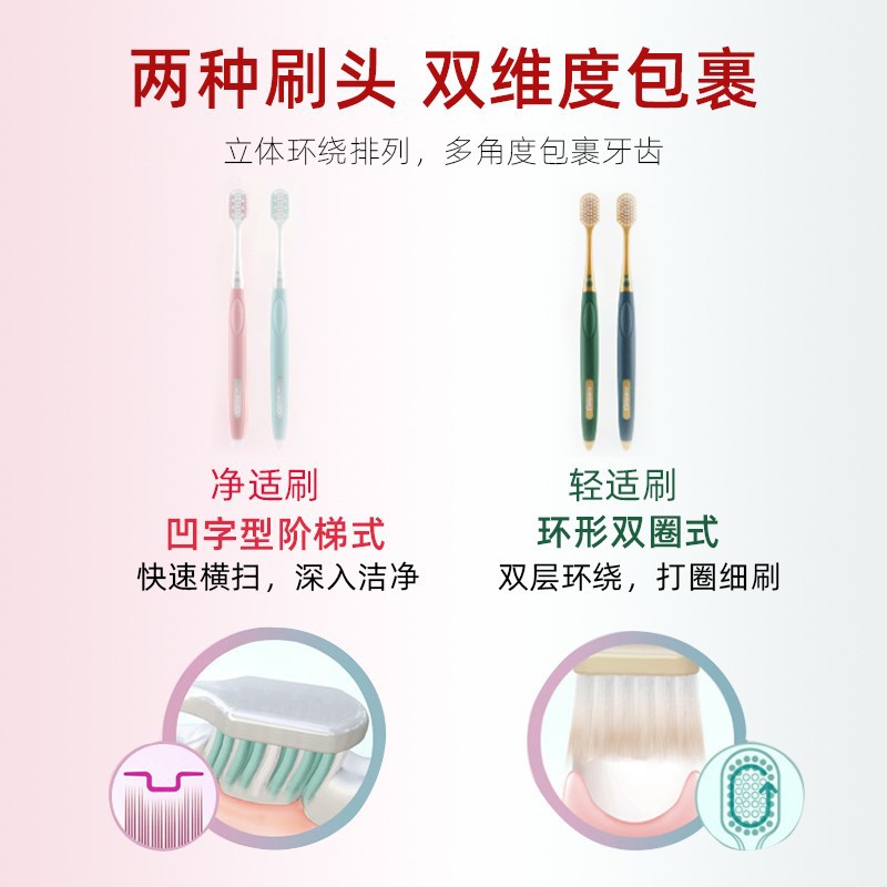 高露洁宽柔绵绵丝牙刷2支装 高低刷毛宽幅包裹成人软毛小宽头牙刷