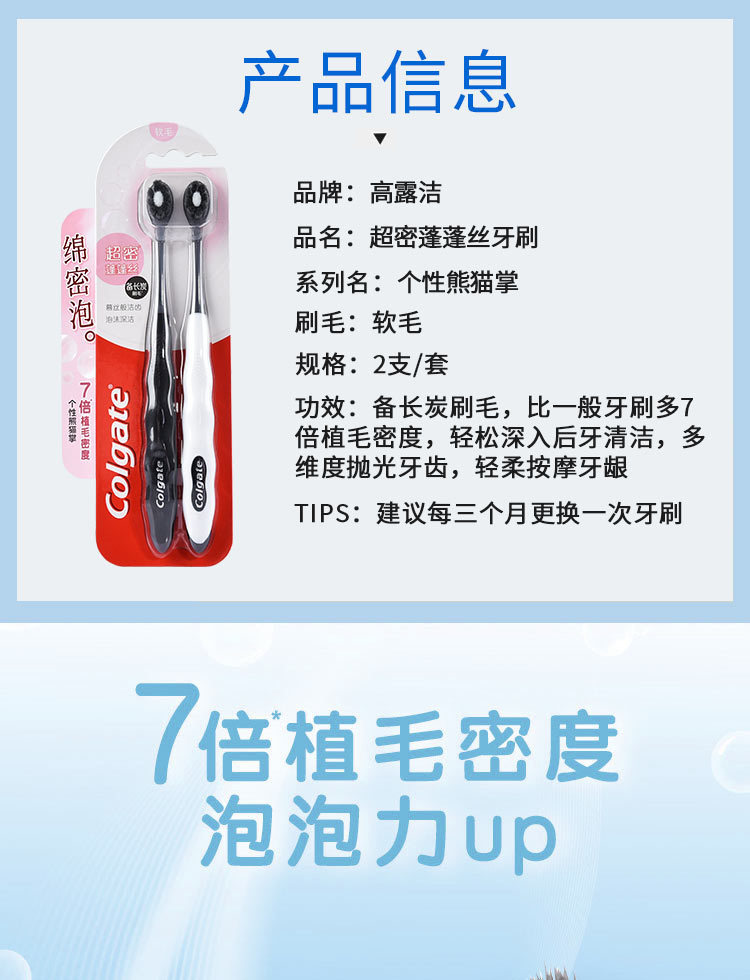 | 产品名称 | 高露洁超密蓬蓬丝牙刷2支装纤柔软毛绵密细毛护龈成人小头牙刷 |