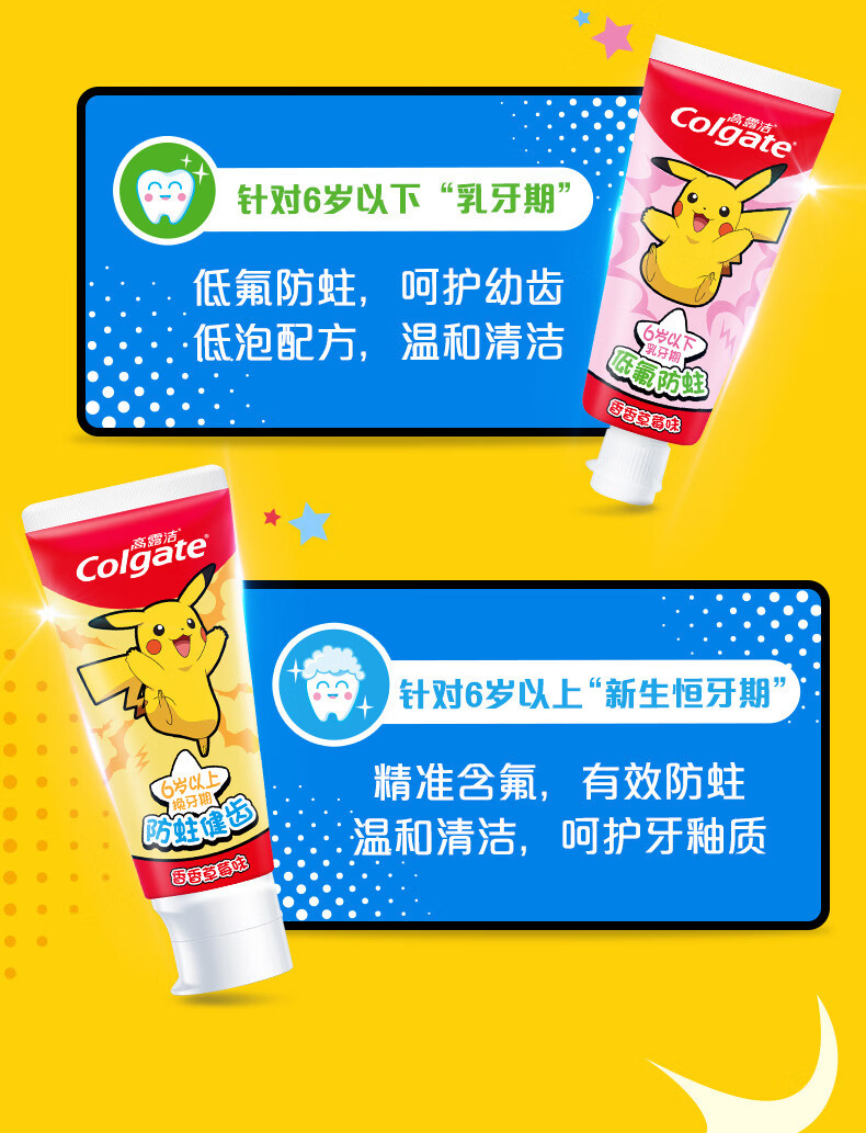 高露洁宝宝儿童牙膏40g含氟防蛀牙膏分龄3-6-12岁换牙期70g牙膏
