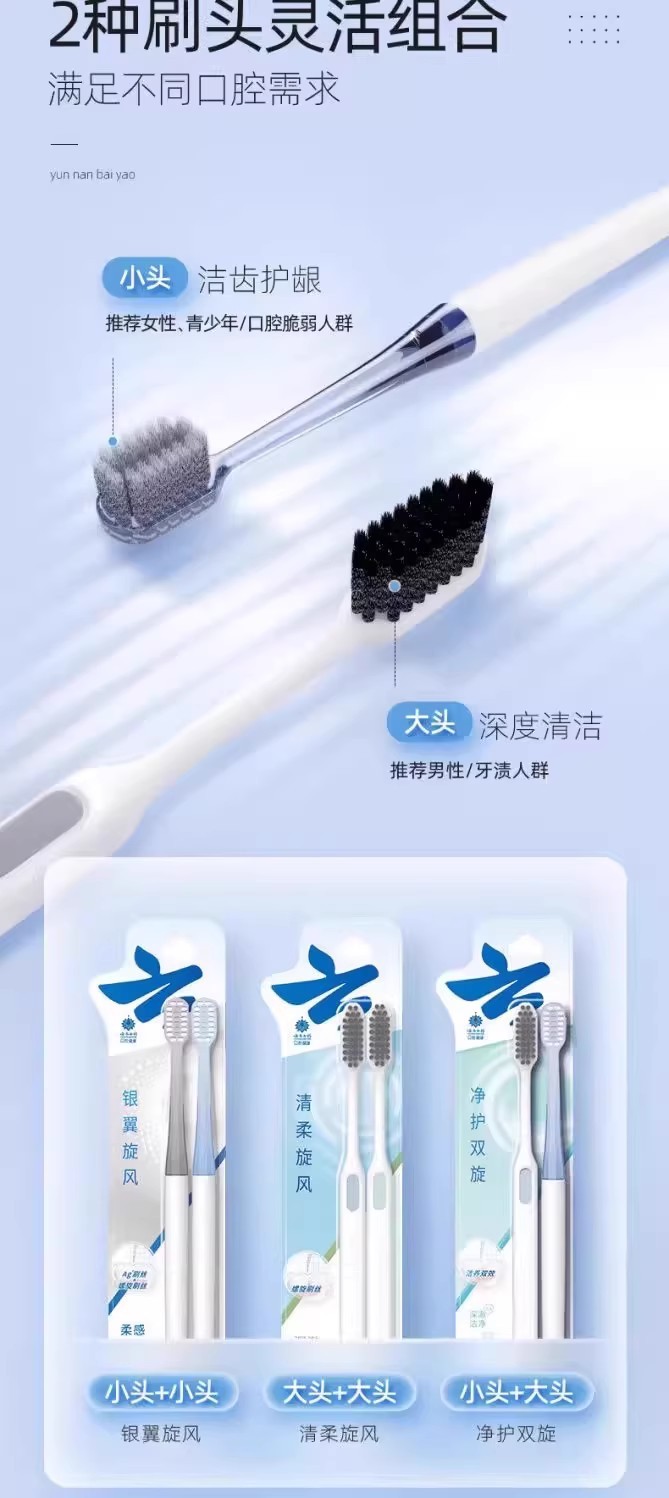 云南白药牙刷软毛家用清洁口腔便携式男女士牙刷浓密刷毛高端呵护