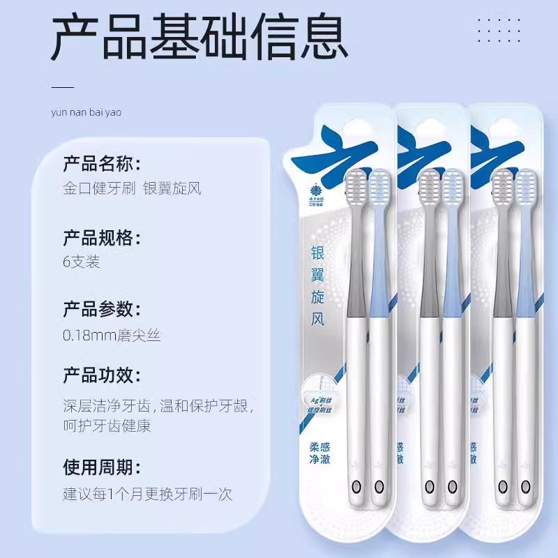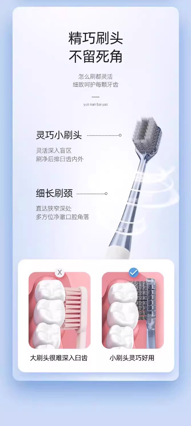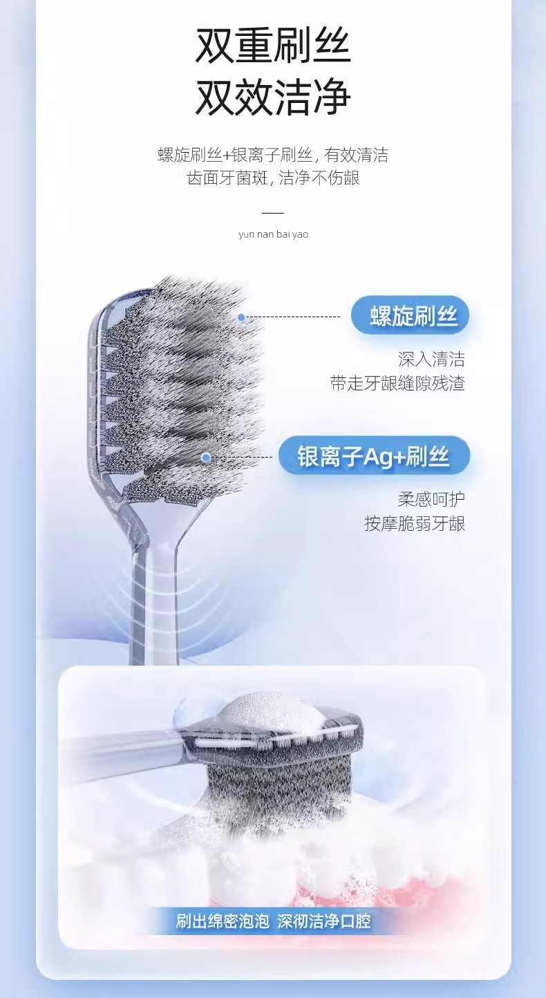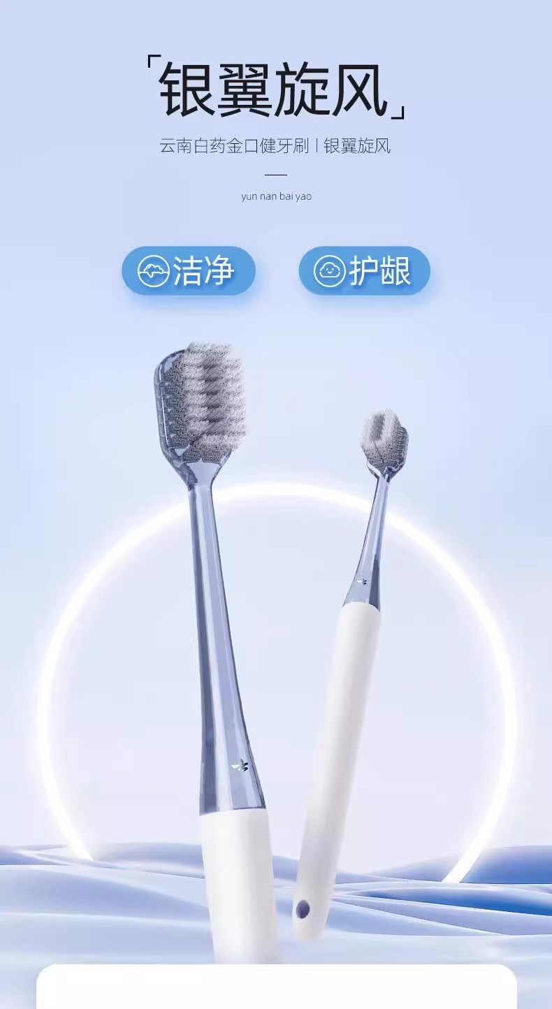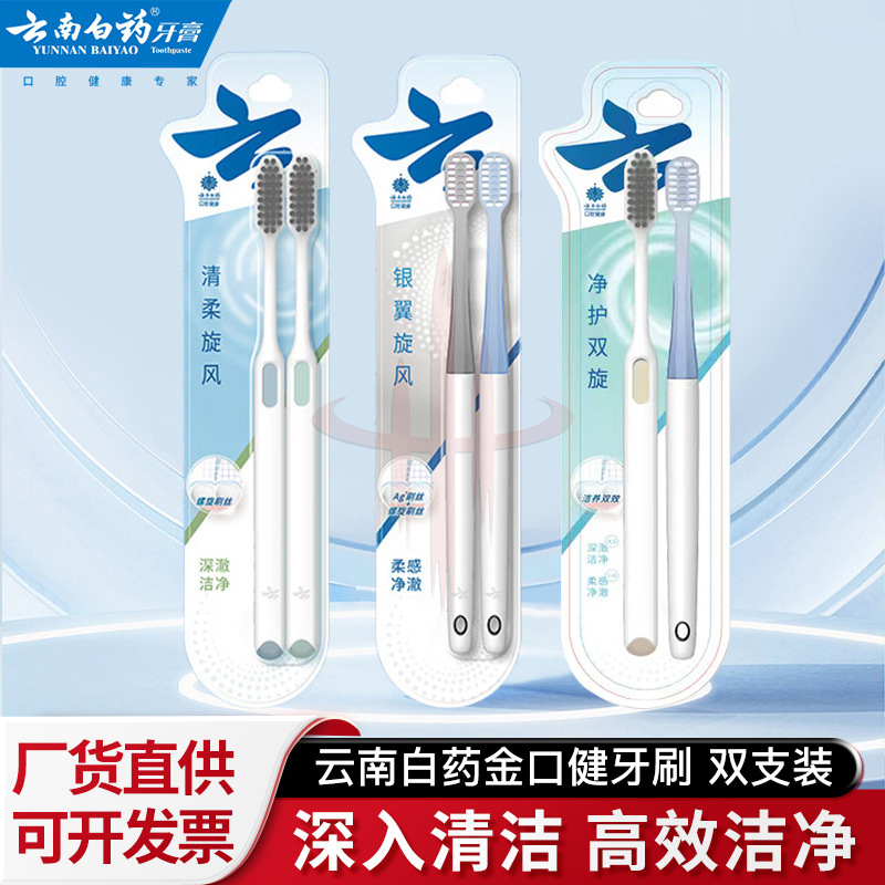 云南白药旋风系列双重刷丝净澈口腔柔感护龈成人软毛牙刷2支装批