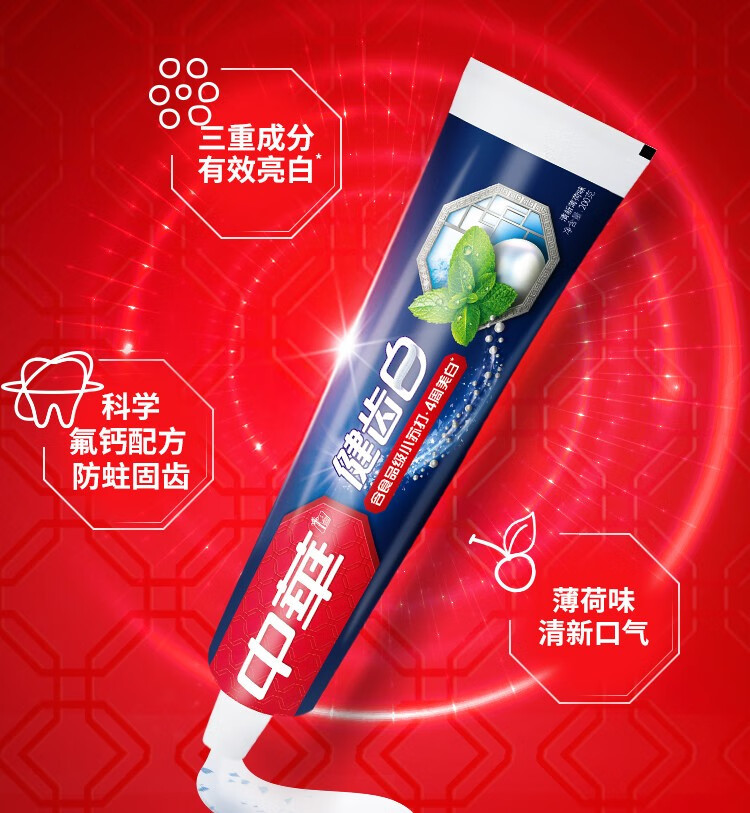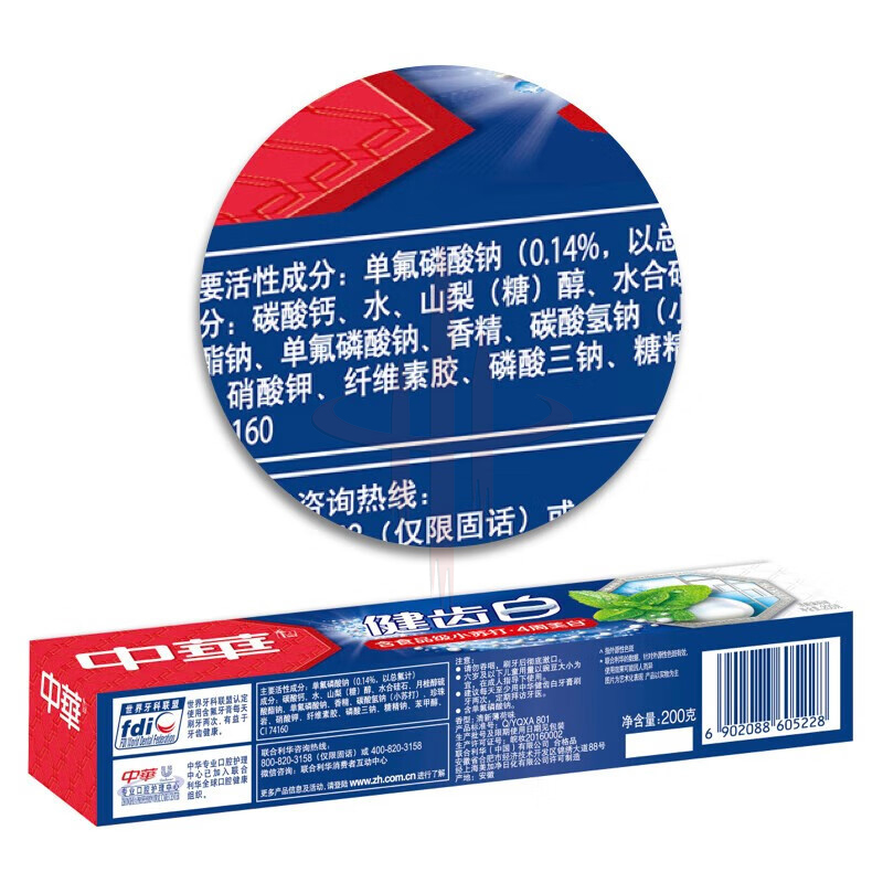 | 产品名称 | 中华牙膏健齿白口腔清洁清新口气含氟防蛀固齿成人家庭实惠装200g |
