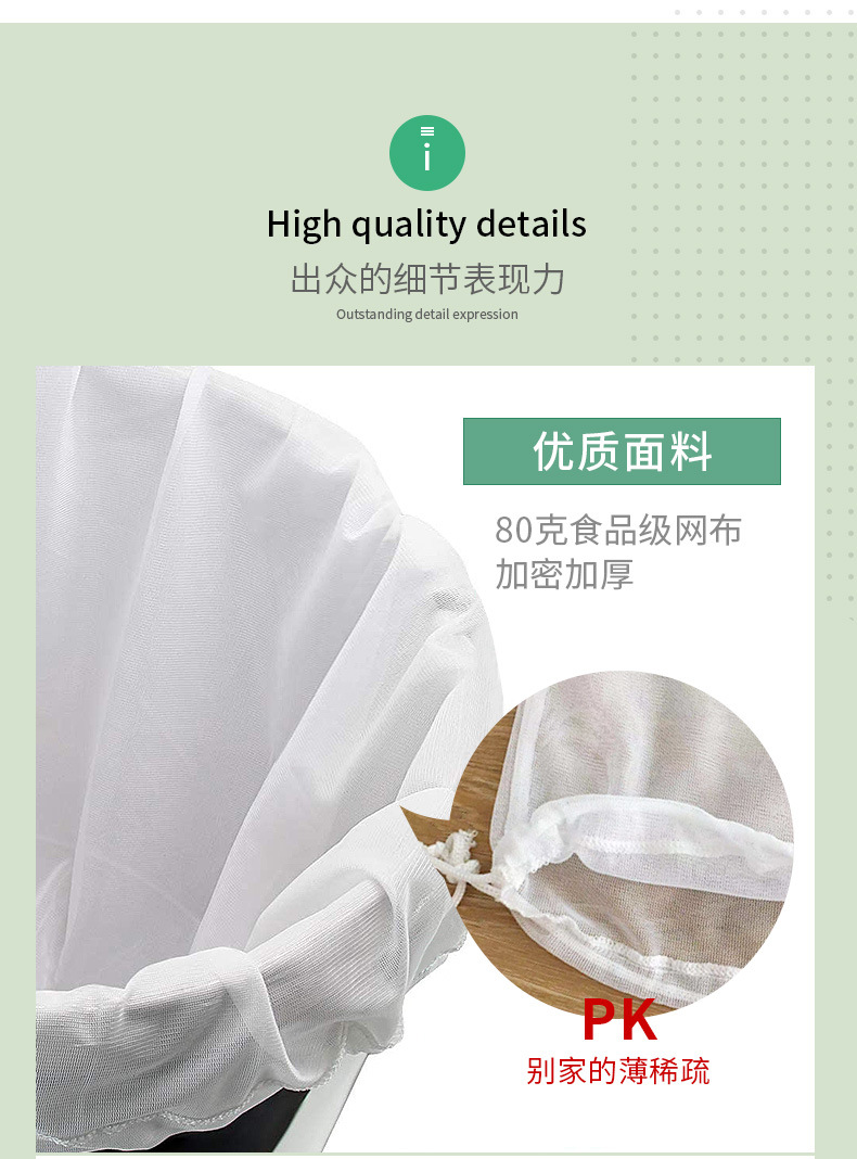 | 产品名称 | 葡萄酒酿造过滤网袋 果汁皮渣分离涤纶过滤袋 液体网状纱布过滤袋 |