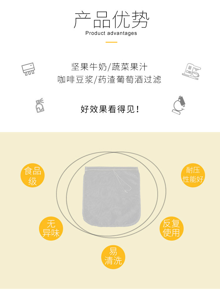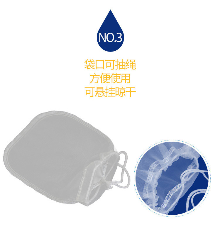 | 产品名称 | 食品级尼龙过滤袋 抽绳80目锦纶坚果牛奶袋豆浆果汁过滤网袋 |