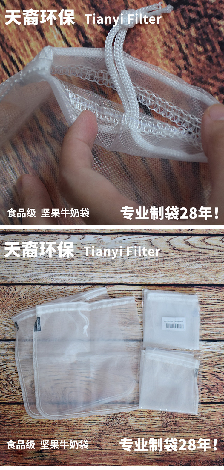 供应食品级尼龙过滤袋 抽绳束口耐高温坚果牛奶豆浆果汁过滤网袋