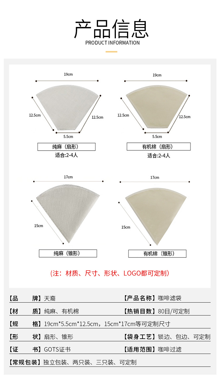 | 产品名称 | 食品级有机棉纯麻咖啡滤袋 滴漏式V型扇形咖啡过滤袋厂家现货批发 |