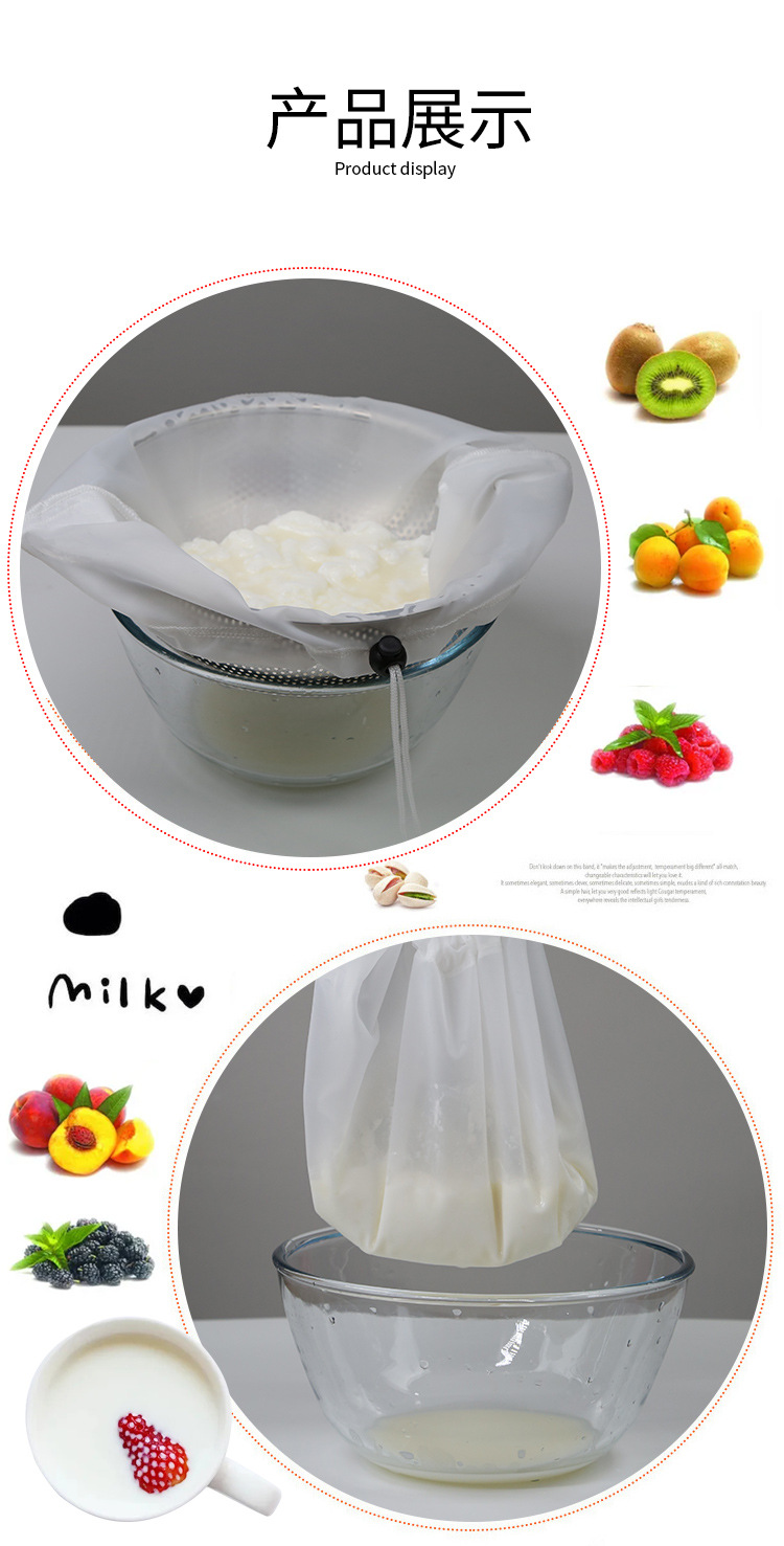 | 产品名称 | 批发酸奶过滤袋 超细自制奶酪豆浆碗过滤袋冷萃希腊酸奶过滤纱布 |
