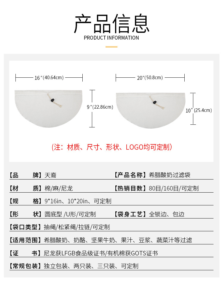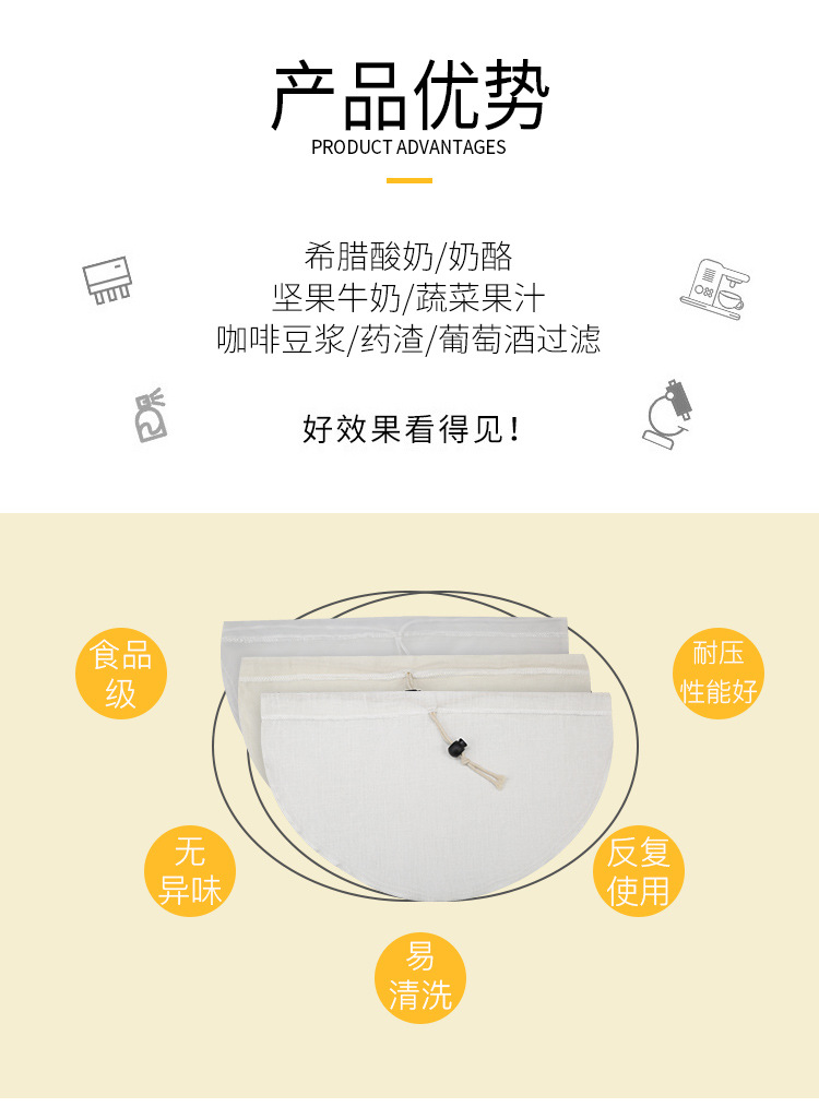| 产品名称 | 批发酸奶过滤袋 超细自制奶酪豆浆碗过滤袋冷萃希腊酸奶过滤纱布 |